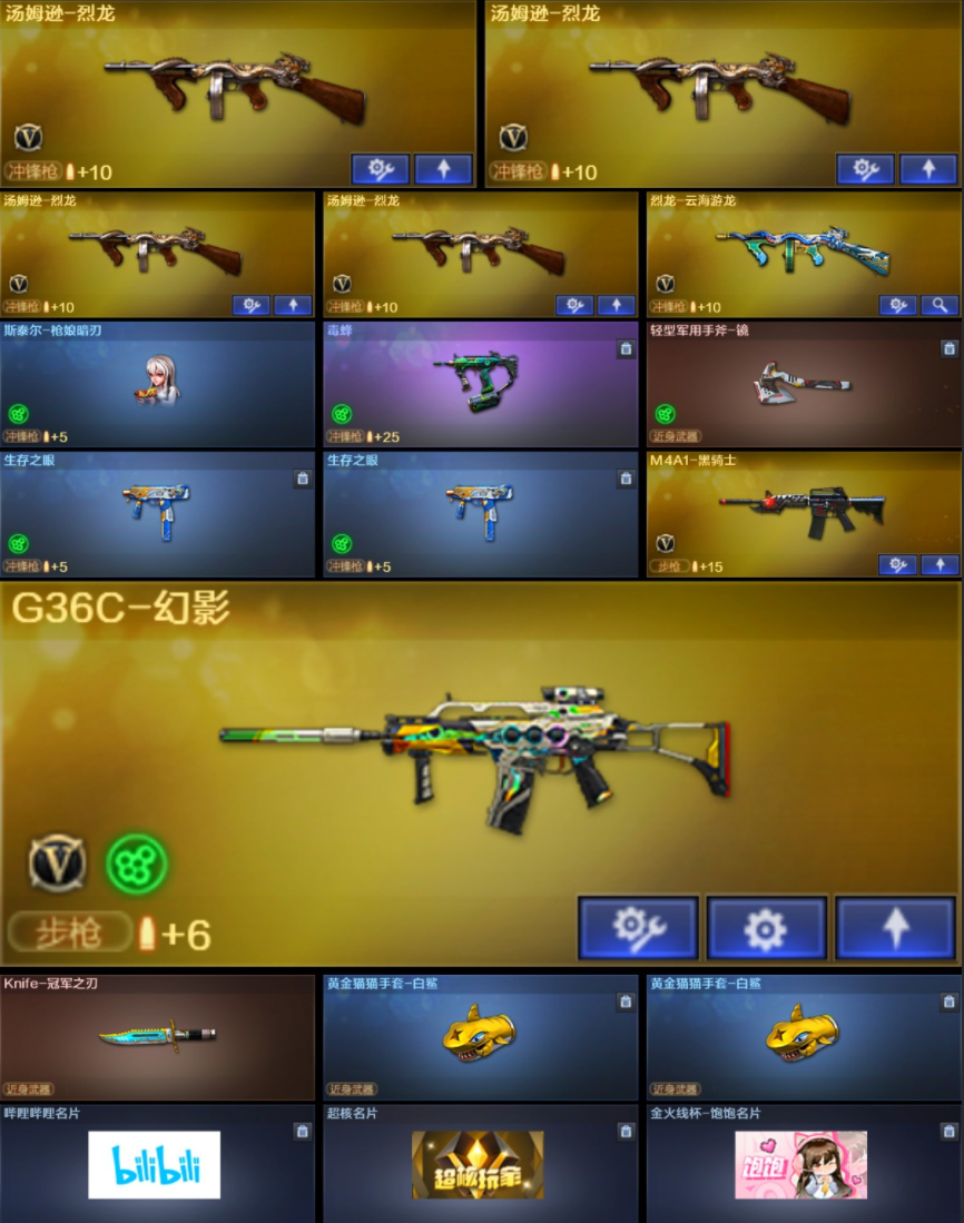 幻神三件套13皮/星神三件套3皮/裁决三件套6皮/白虎5皮三件套/银翼/G36幻影/满配副手臻藏雷神