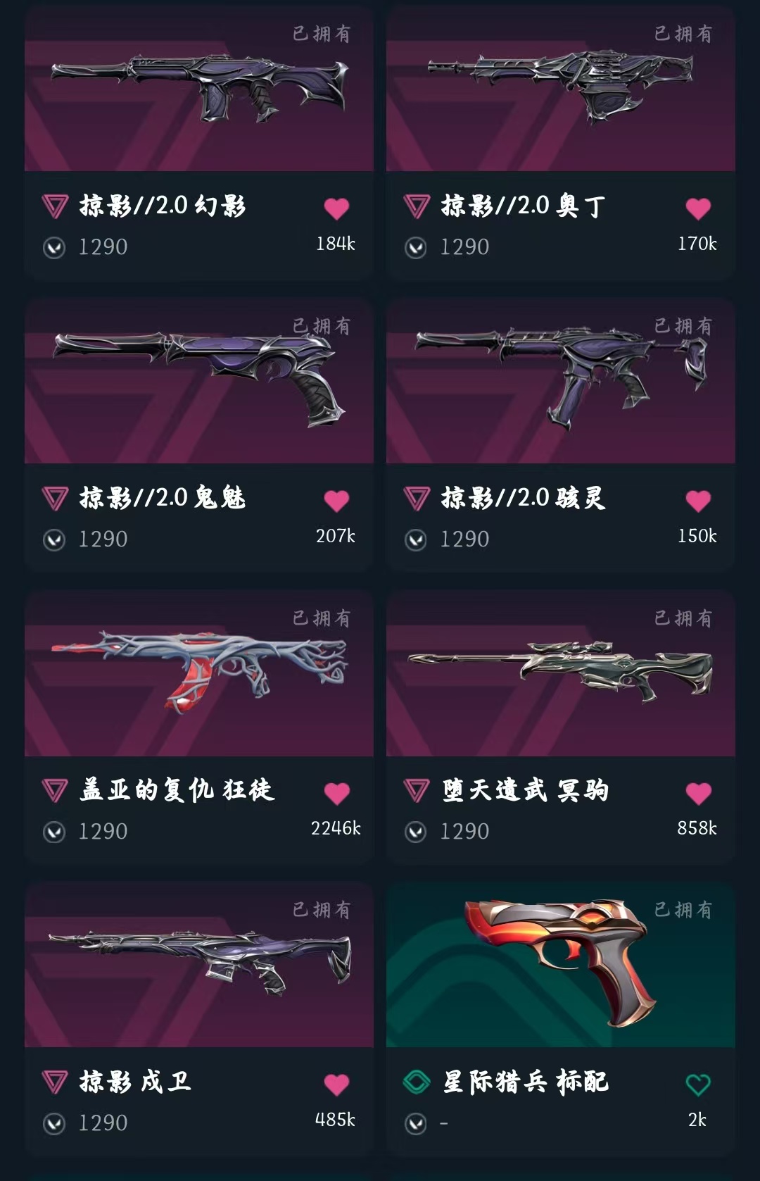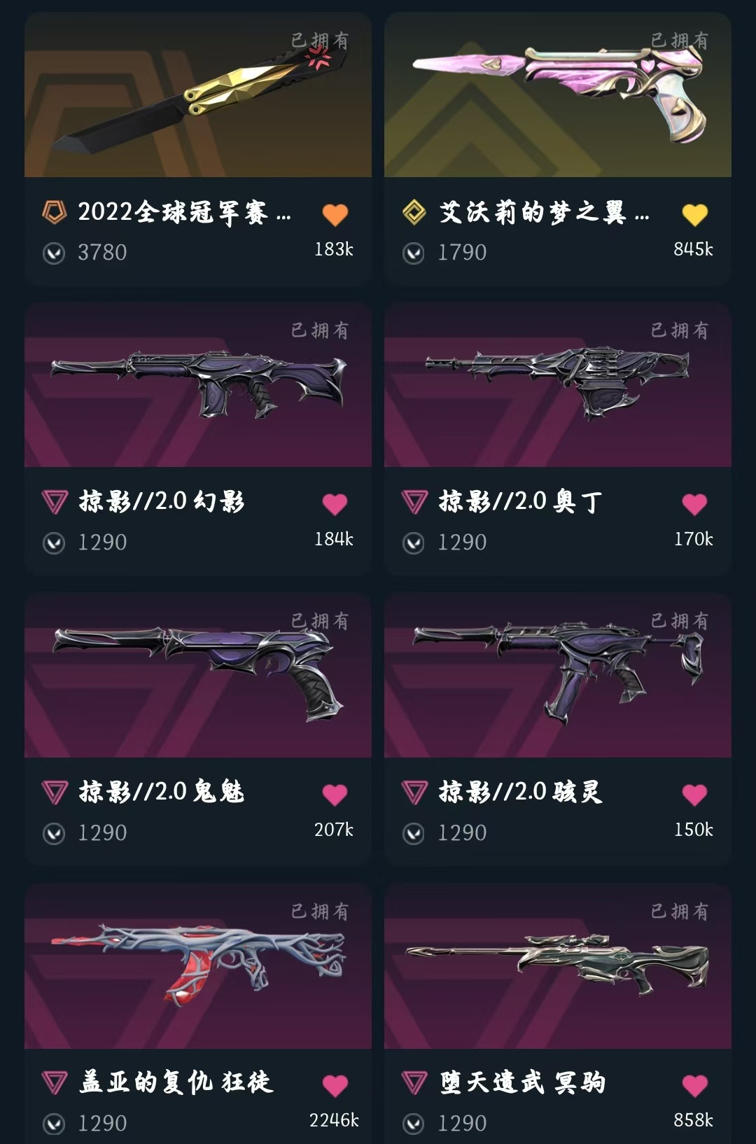 冻结秒解✨掠影2.0套✨影钩✨22冠军套✨掠影幻影✨创纪元狂徒✨盖亚狂徒✨千灵华绽正义