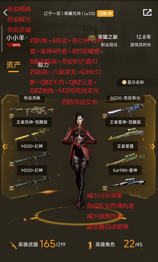 首页 > 租号大厅 > 穿越火线 > 网通区/辽宁一区 > 生化爆破全装✅四防隼+6传说+八面凌龙✅6烈蝴蝶6盘炼狱+带皮炽芒蝶刃+双幻神12件套+星神3件+幻