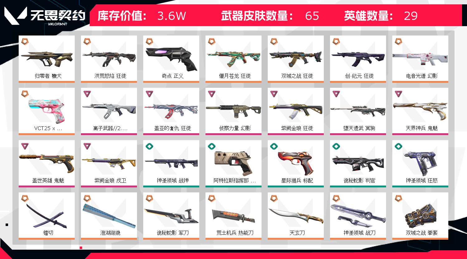 • 皮肤资产价值: 36050
