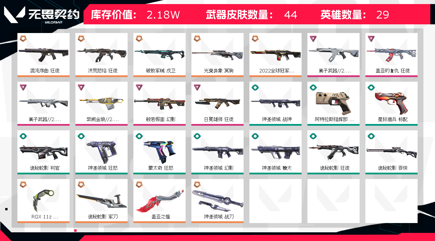 • 皮肤资产价值: 21750