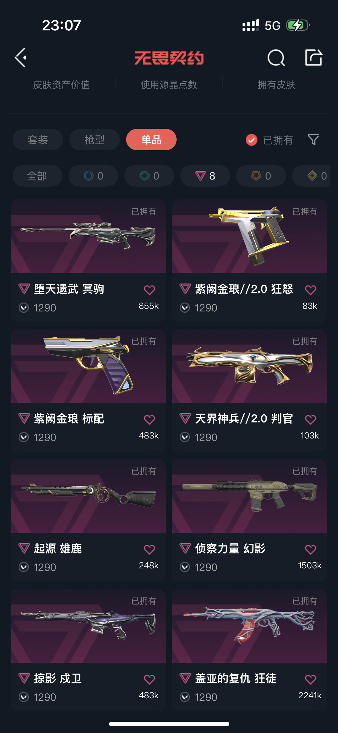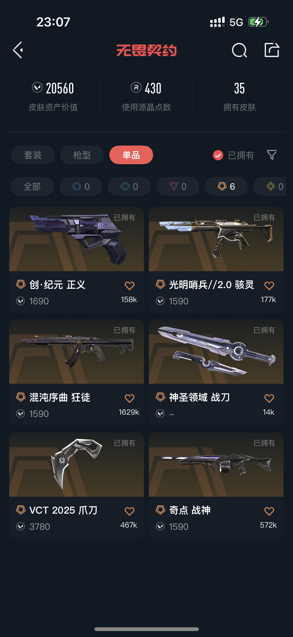 有大学生;奇点 战神,VCT 2025 爪刀,起源 雄鹿,盖亚的复仇 狂徒,掠影 戍卫,侦察力量 幻影,混沌序曲 狂徒,