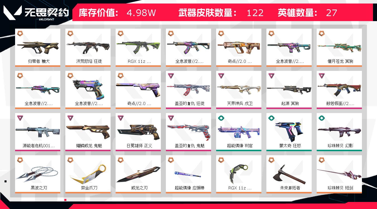 首页 > 租号大厅 > 无畏契约-wegame > wegame/wegame > 黑波 威龙 显卡 紫金 奇点蝴蝶T0刀 盖亚 洪荒狂徒🔥 全套耀麟 起源偃月全息大狙