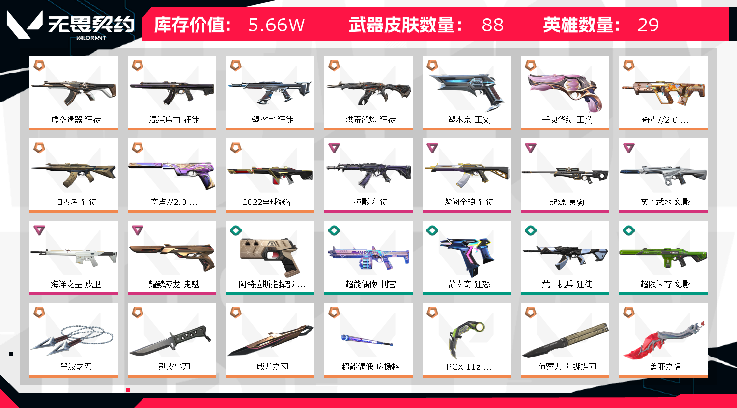 • 皮肤资产价值: 56630