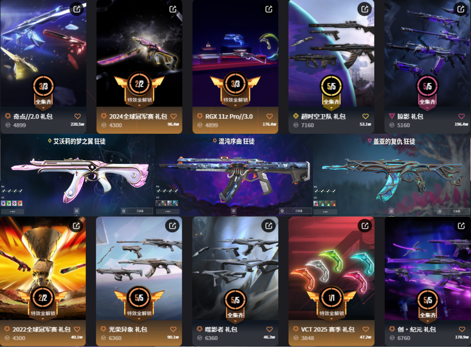 精氪11W特效炫彩拉满⚡2224冠军超时空套RGX威龙VCT蝴蝶刀⚡混沌盖亚异象猫猫紫金狂徒莲花幻影