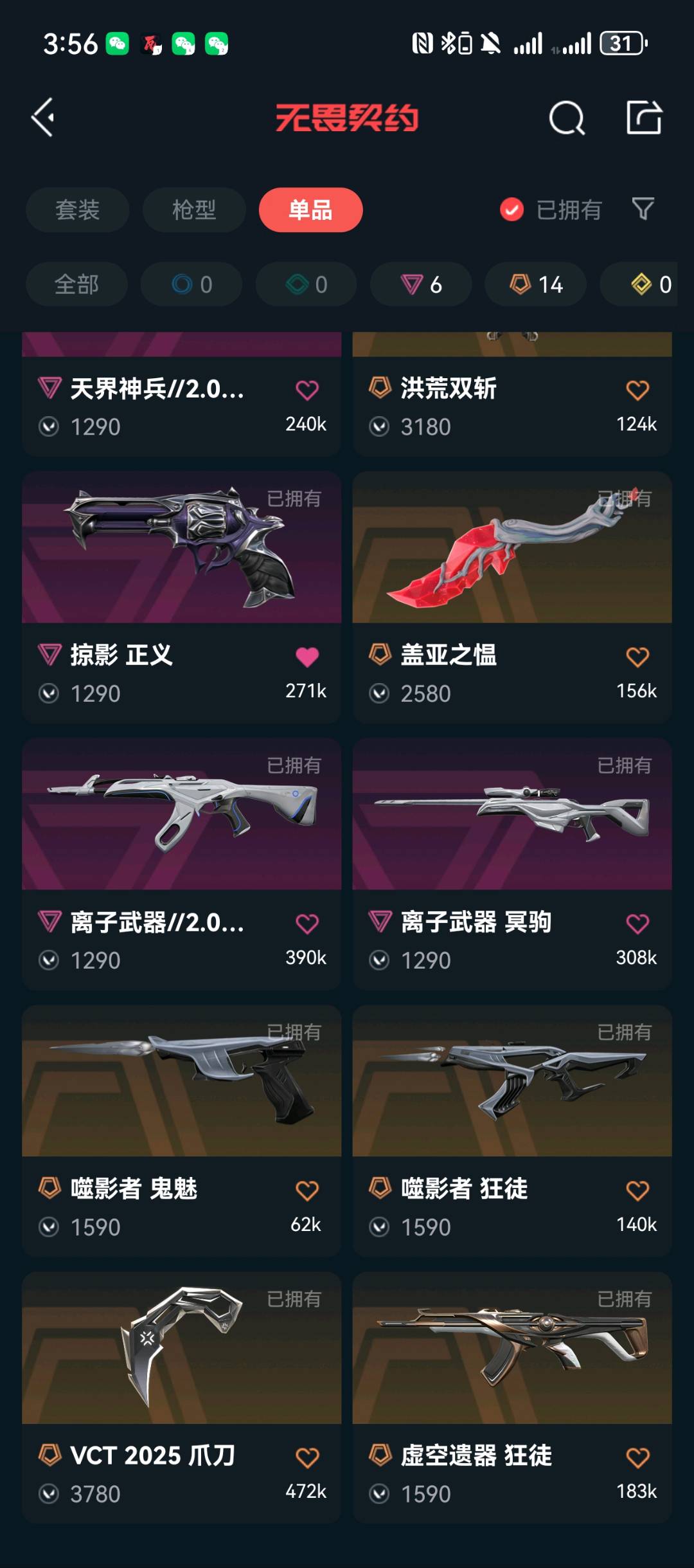 请不要挂机和秒退,谢谢🫰;VCT 2025 爪刀,天界神兵//2.0 幻影,虚空遗器 狂徒,洪荒怒焰 狂徒,噬影者 狂徒,RGX 11z Pro 狂徒,离子武器//2.0 狂徒,