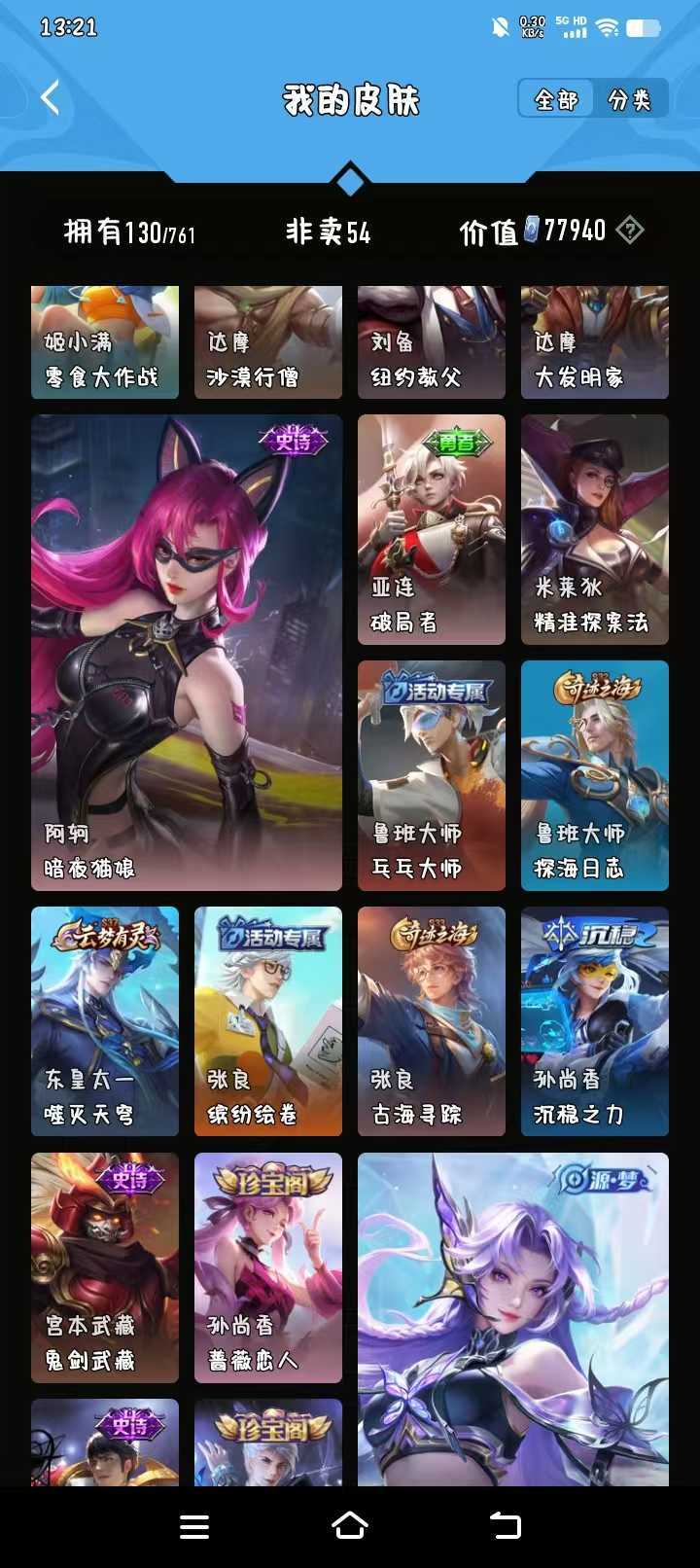v10、12典藏520皮、马超无双飞将、韩信典藏、马可深海之熄、瑶珍品传说大耳狗之梦、青丘·九尾、枫霜尽、绯月行、前尘镜、至尊宝、天魔缭乱