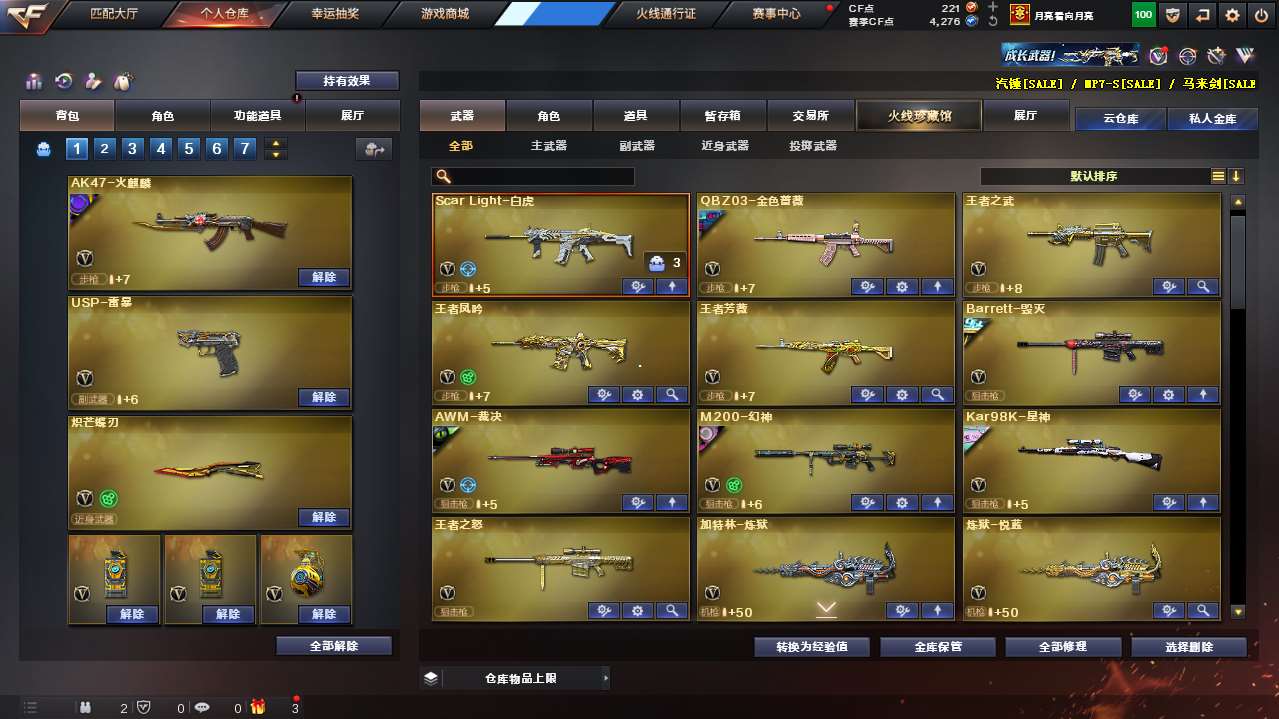 【m200幻神+幻神宠儿+幻神cfs2022+幻神荣耀世冠白鲨+幻神电流骇客】【usp雷暴+cop雷霆+cop幻灵】【炽芒蝶刃】【星神】【白虎】【觉醒王者凤吟+王者芳薇】【星神ag冠军+qbz荣耀世冠白鲨+毁灭冠军之怒+火麒麟华夏之心+火麒麟巅峰荣耀+雷神宠儿+屠龙荣耀世冠+屠龙荣耀之锋】【毁灭音效卡+雷神音效卡+修罗云海游龙音效卡】【云悠悠+荒漠琉璃+鹰+影豹+王者零国色天香+王者潘多拉+王者魅影+满配云海玲珑+零热舞青春】;