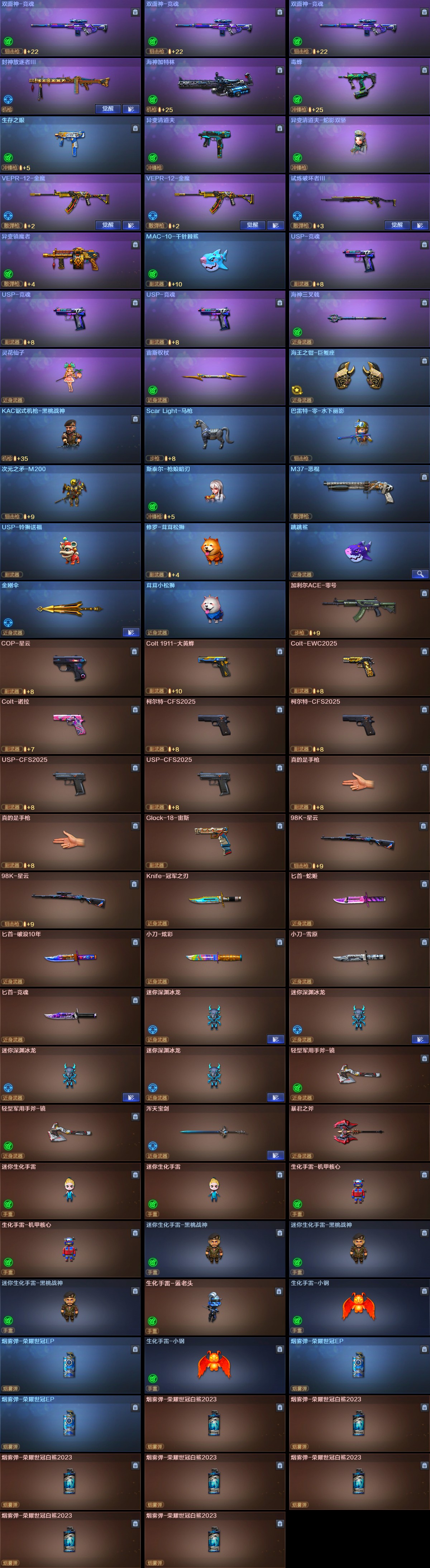 【稀有武器】:传说夜影/传说圣灵/传说幽瞳/传说幽冥/M200-幻神(2)/Kar98K-星神/VSK-94-金蚀(2)/G36C-幻影/ScarLight-白虎/HK417-朱雀/QBZ03-天罚(3)/USP-雷暴/破空枪刃-夜魔(2)/柯尔特-竞技荣光/COP357-云龙/柯尔特-荣耀世冠白鲨2023(2)/修罗-古蛇迷踪/荣耀世冠-柯尔特/COP357-雷霆王者-觉醒版/柯尔特-冠军之特(2)/王者破空枪刃/金色蔷薇-古蛇迷踪/QBZ03-云龙/QBZ03-金色蔷薇/AK47-火麒麟(2)/M4A1-黑龙(2)/M4A1-雷神(2)/M4A1-黑骑士(2)/AK47-黑武士/Barrett-毁灭/Barrett-极光/AWM-裁决/M200-竞技荣光/RPK-盘龙(6)/加特林-炼狱/悦蓝-惊涛骇浪-觉醒版/汤姆逊-烈龙(5)/AA-12-雷霆/炽芒蝶刃(2)/马来剑-夜魔/擎天-竞技荣光/云龙扇(2) 【王者武器】:王者之心-觉醒版/王者之力-觉醒版/王者幻神-觉醒版/王者破空枪刃 【热门角色】:电竞教官-云悠悠/关小雨/华/枪娘樱/晴雅/司雨/星际战将/鹰/雨墨/雨棠/隼/奇洋探员/蛇隐宗/王者春/王者-零/王者-魅影/王者潘多拉/王者岚兮儿/炽天使/流浪蔷薇/兔囡囡/潘多拉/妮妮 【热门音效卡】:M200-幻神音效卡/Kar98K-星神音效卡/AWM-裁决音效卡/Scar Light-白虎音效卡/QBZ03-金色蔷薇音效卡/QBZ03-天罚音效卡/M4A1-雷神音效卡/Barrett-毁灭音效卡/M4A1-黑骑士音效卡/AK47-火麒麟音效卡 【热门皮肤】:幻神-AG-CFPLS24冠军皮肤/幻神-Heartshot皮肤/幻神-传奇欧欧皮肤/幻神-星耀皮肤/幻神-荣耀世冠白鲨2023皮肤/幻神-星火小队签名臻藏版皮肤/幻神-曹操皮肤/白虎-白鲨-CFPLS23冠军/裁决-巅峰荣耀皮肤/龙啸-巅峰荣耀皮肤/屠龙-星耀皮肤/星神-傲竹金蛇皮肤/金色蔷薇-量子蔷薇皮肤/火麒麟-HeartShot皮肤/火麒麟-白虎/炼狱-末日审判皮肤/QBZ03-传奇宠儿/天罚-孙权皮肤/裁决-羽掣皮肤/Kar98K-星神-冠军之星皮肤/雷神-荣耀世冠AG/星神-巅峰荣耀 皮肤/火麒麟-巅峰荣耀/屠龙-破浪逐光皮肤/裁决-流光秘银/黑龙-冠军之武/炽芒蝶刃-破浪逐光皮肤/AK47-火麒麟-传奇EVEN/ScarLight-白虎-暗星/炽芒蝶刃-荣耀世冠白鲨2023皮肤/火麒麟-冠军之心/屠龙-荣耀之锋/毁灭-荣耀之怒/QBZ03-荣耀世冠EP 【其他亮点】:Knife-冠军之刃/玄武-枪娘火莲/M200-奇幻迎春吉狮/幻神-枪娘爱丽丝/海神加特林/毒蜂/异变清道夫/VEPR-12-金魔(2)/海神三叉戟/宙斯权杖/Scar Light-马枪/斯泰尔-枪娘暗刃/USP-铃狮送福/修罗-茸茸松狮/茸茸小松狮/Glock-18-宙斯/烟雾弹-荣耀世冠白鲨2023(7)/超核名片 (截图展示段位不代表实际段位,如赛季更新等不可抗拒因素发生变化,其余道具看截图或咨询客服);USP-雷暴,荣耀世冠-柯尔特,柯尔特-荣耀世冠白鲨2023,传说幽冥,柯尔特-冠军之特,炽芒蝶刃,Knife-冠军之刃,