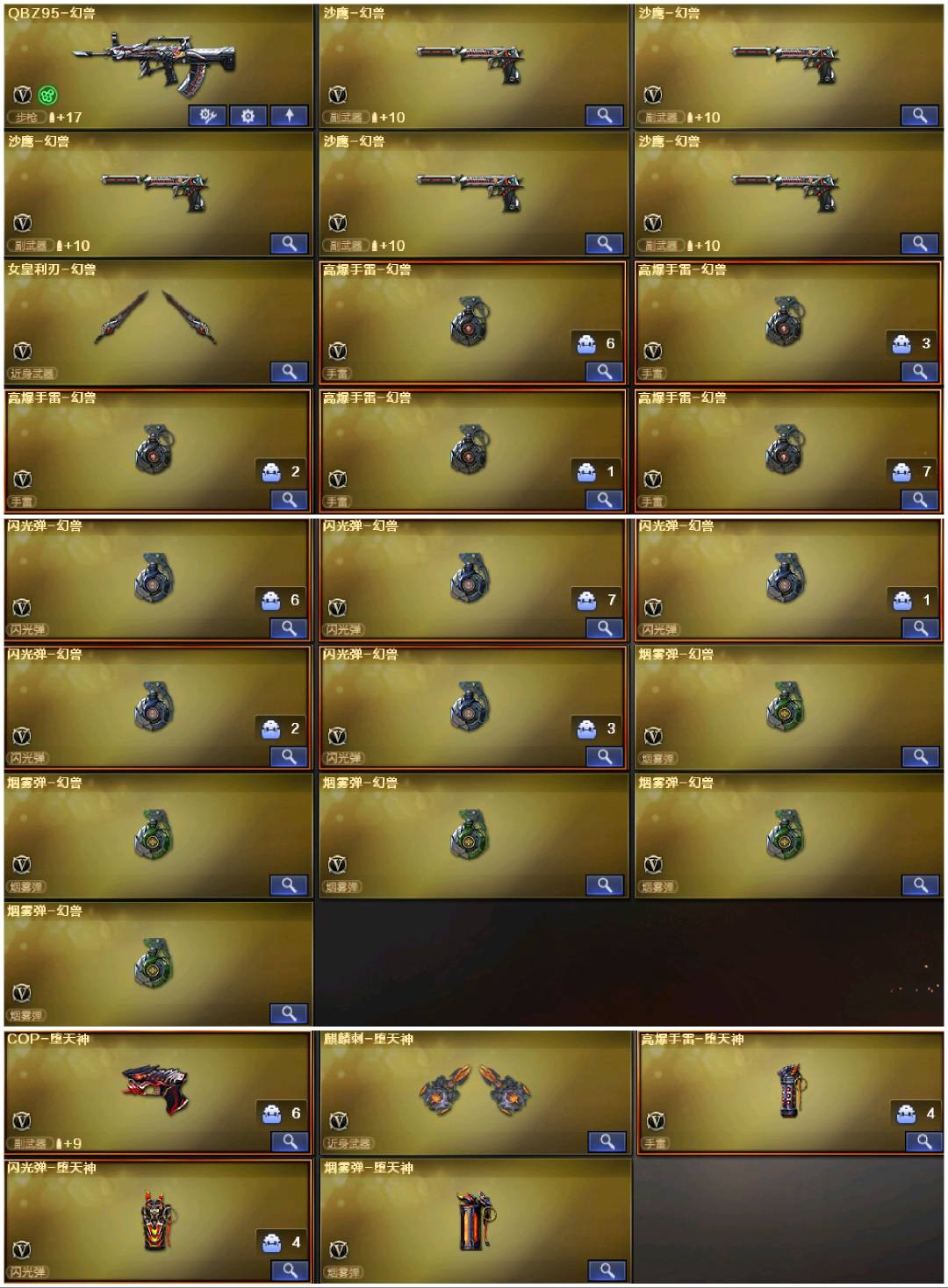1️⃣5套幻兽⚡幻神3皮⚡裁决三件套⚡星神带皮⚡白虎天戎6盘6烈蝴蝶⚡7把质量副武器