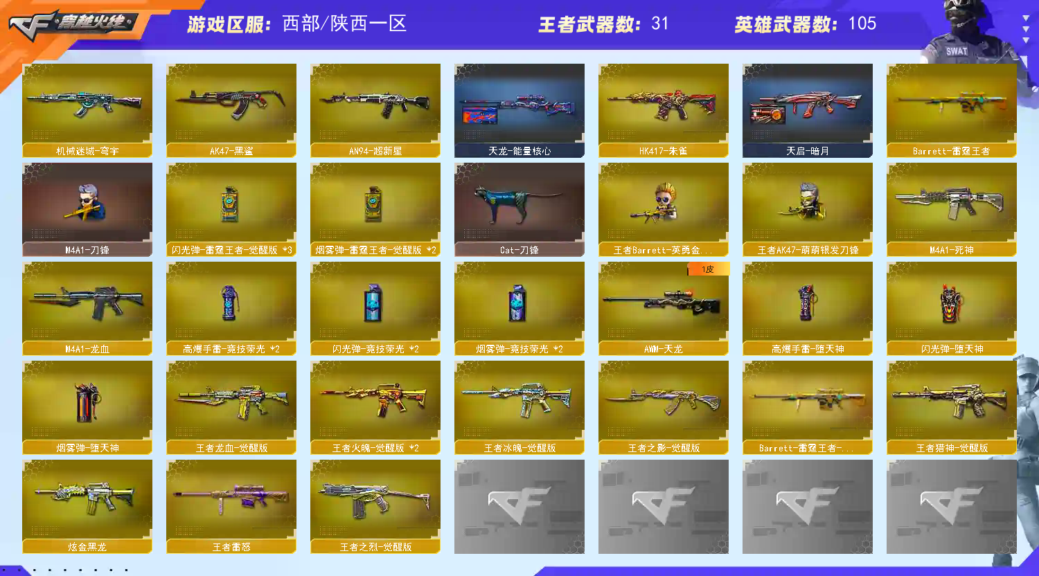 • 游戏区服:穿越火线 / 电信区 / 陕西一区