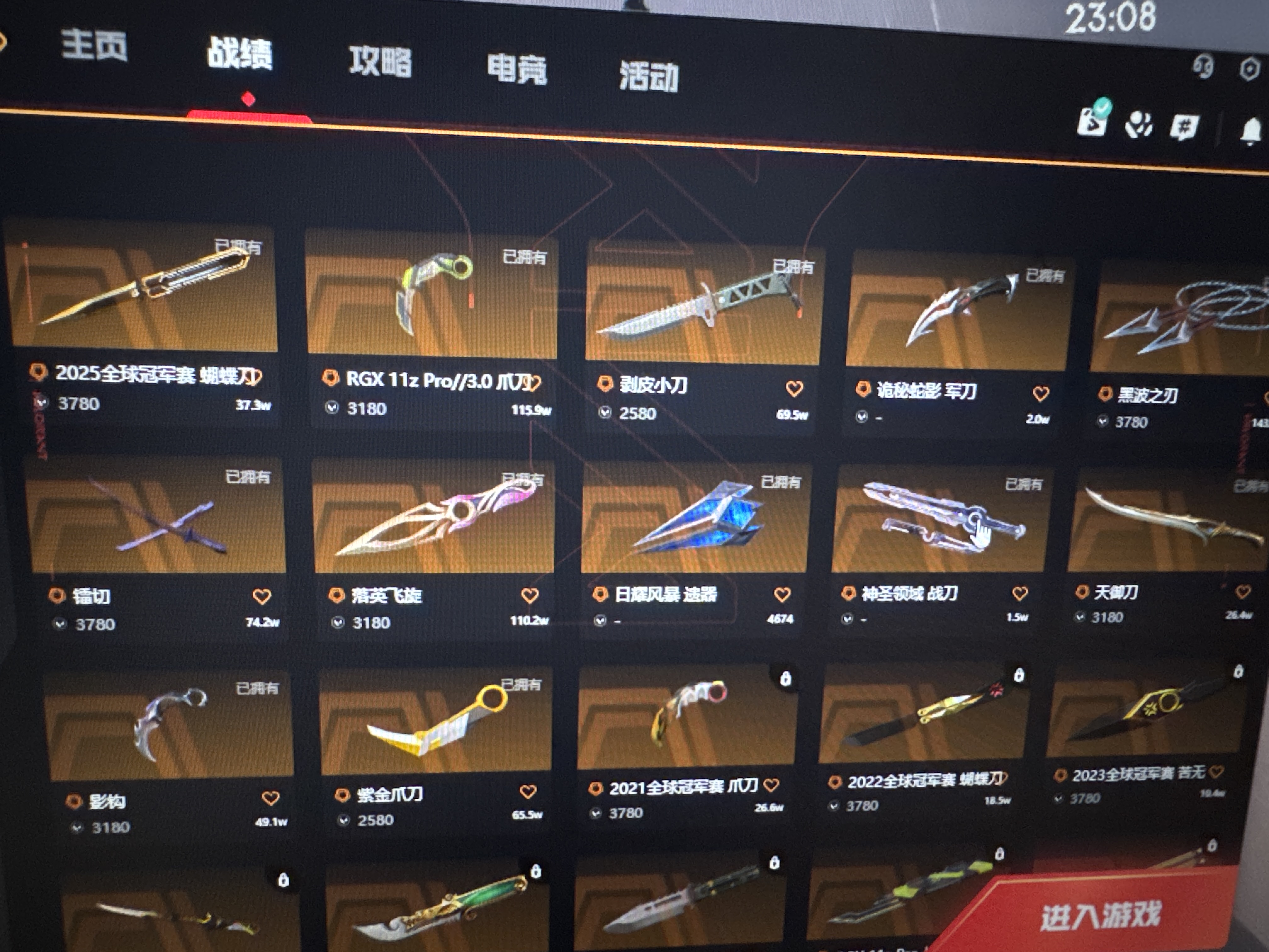 允许 英雄17 武器皮肤数量76;黑波之刃,紫金爪刀,剥皮小刀,镭切,盖亚的复仇 狂徒,洪荒怒焰 狂徒,掠影 狂徒,