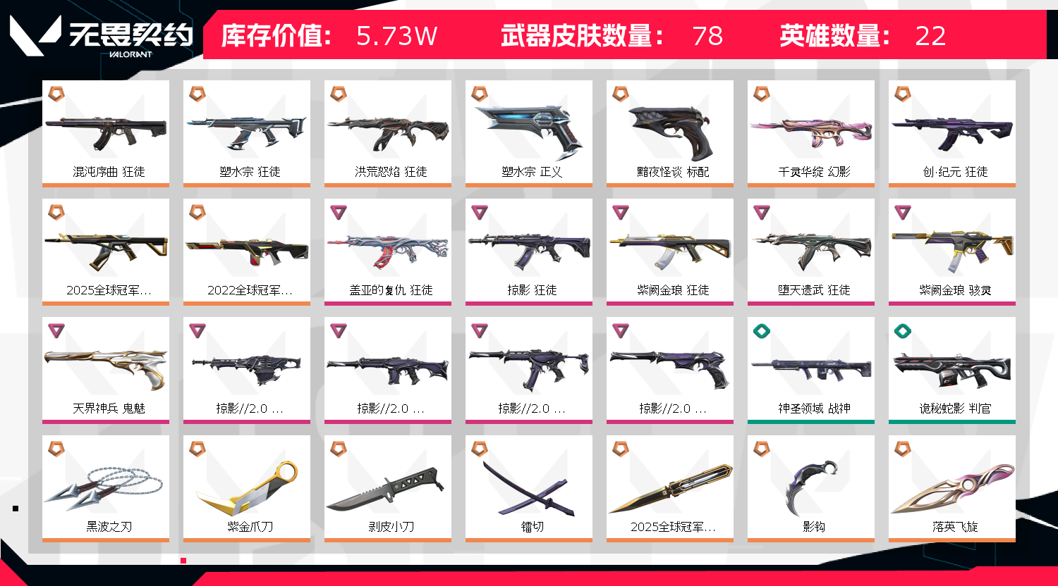 • 皮肤资产价值: 57330