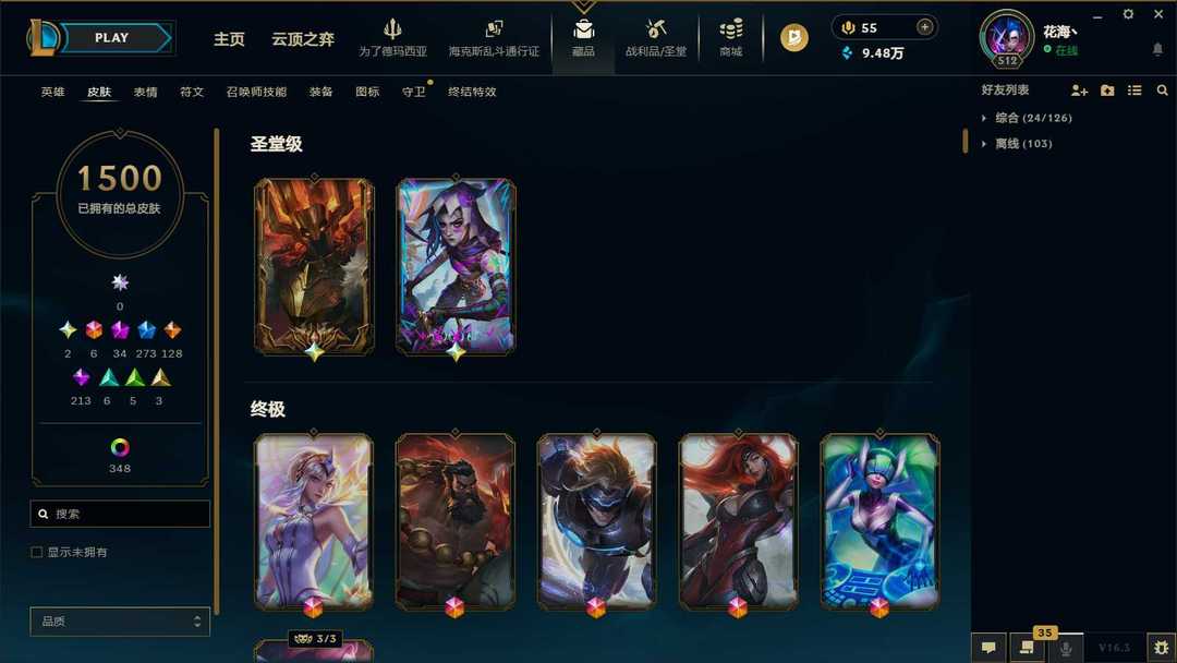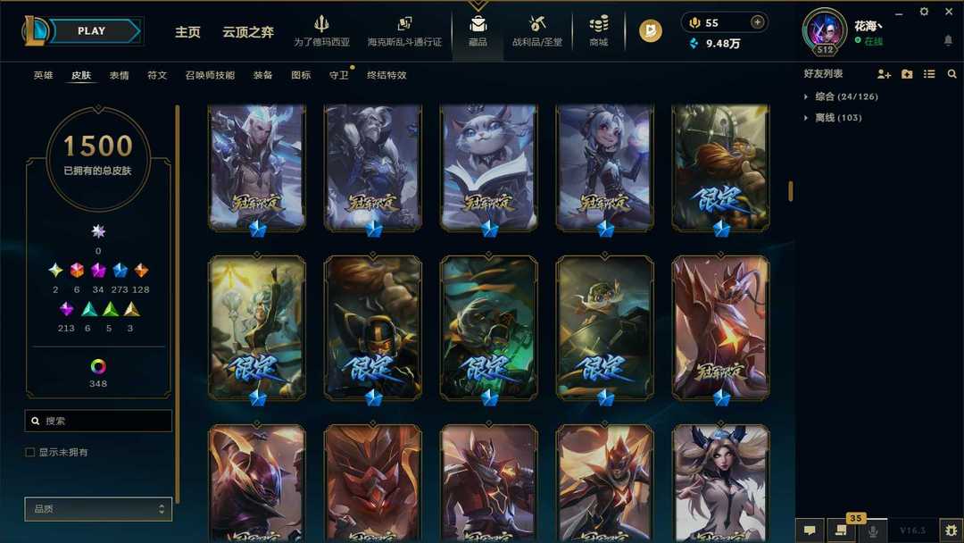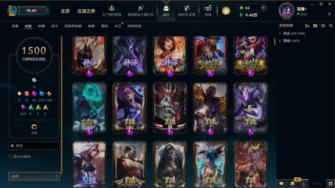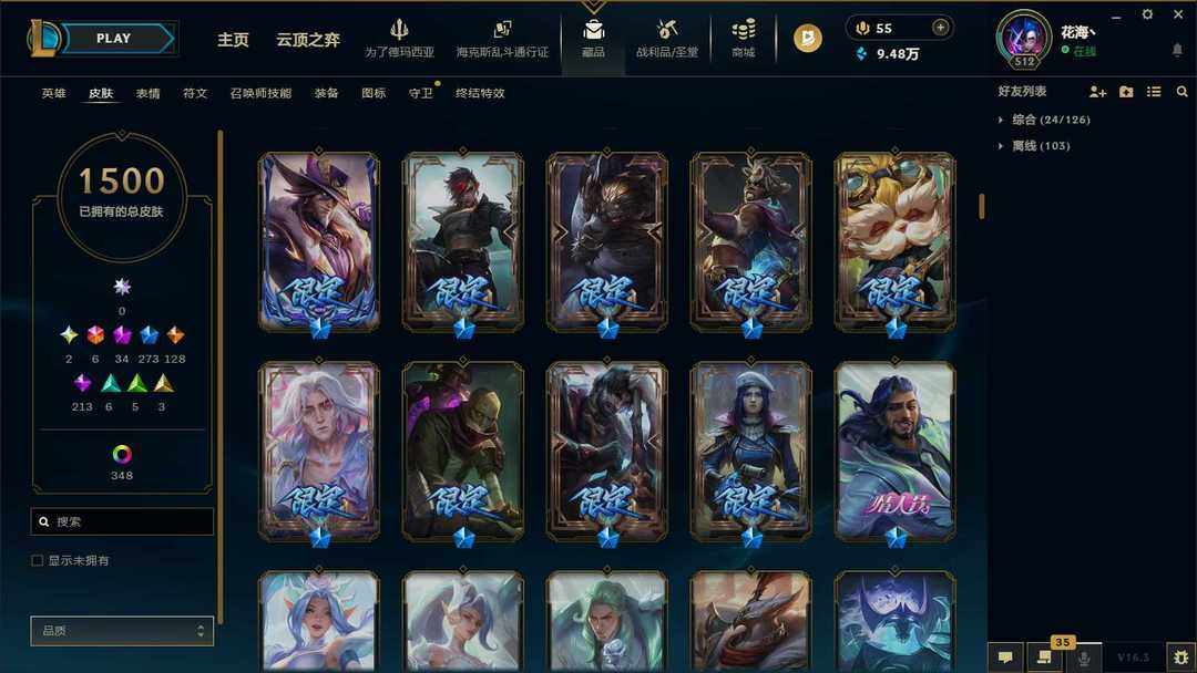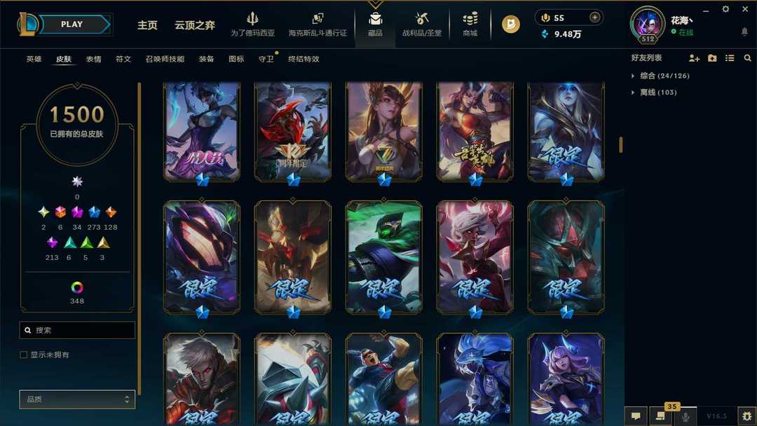 1453P-皮城警备可排位-31神话-183限定-90传说-全史诗-龙虾-至臻卡莎-亚索-永恩-ez-瑞文-万豪-女枪-希维尔等等-超多年限-情人节套-星守套等