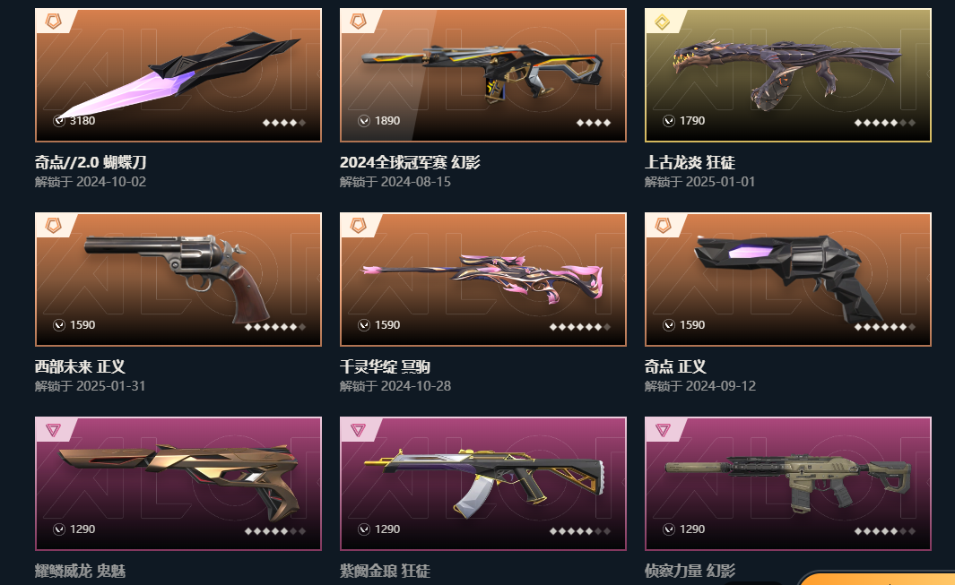 2024冠军幻影🔥上古龙炎狂徒🔥耀林威龙狂徒🔥紫金狂徒🔥侦查幻影🔥千灵大狙🔥西部正义奇点蝴蝶刀;