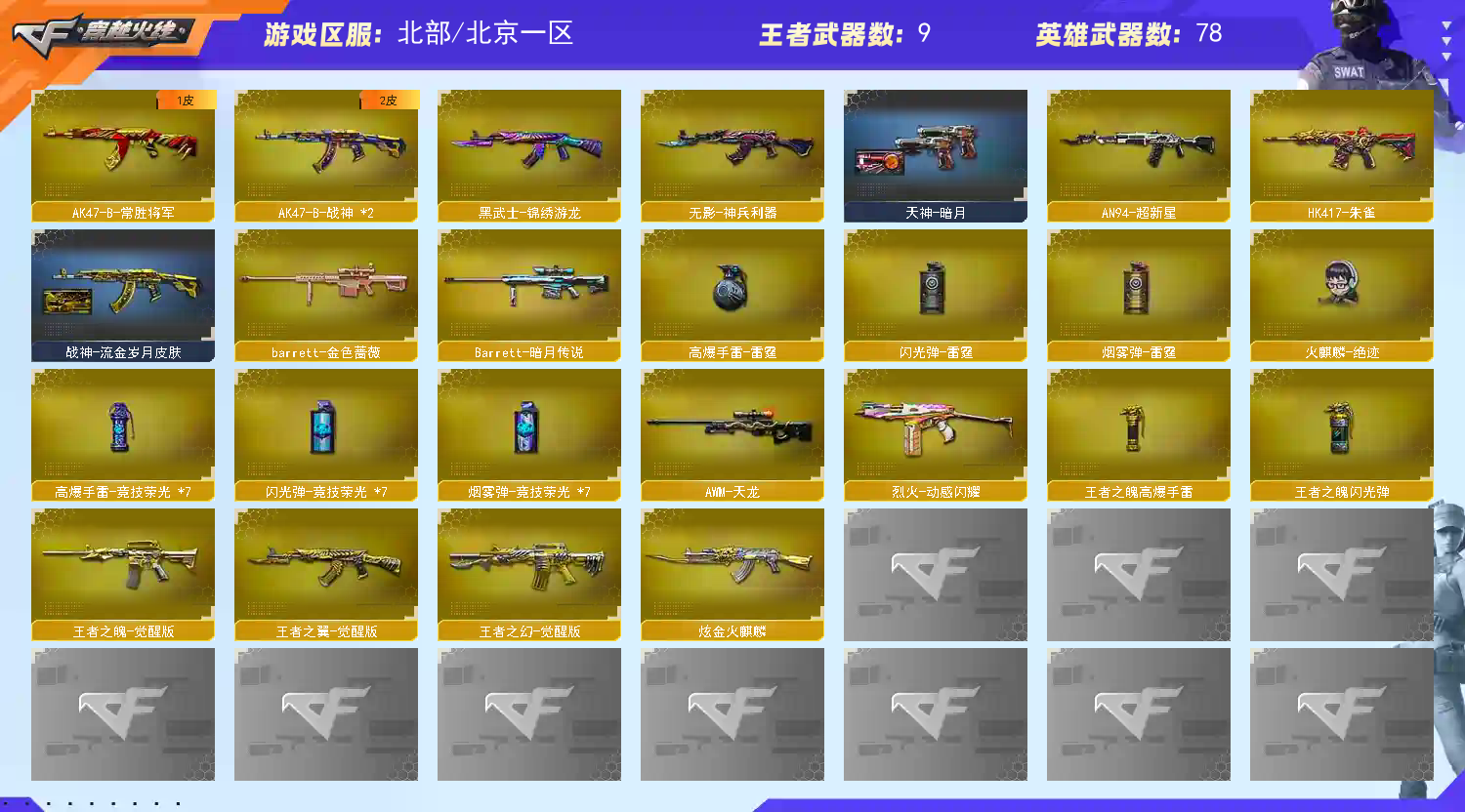 首页 > 租号大厅 > 穿越火线 > 网通区/北京一区 > 【允许排位】艾丽莎+幻神巅峰荣耀+音效+雷暴/星神璀璨+冠特/qbz冠薇+白虎AG/死亡六烈