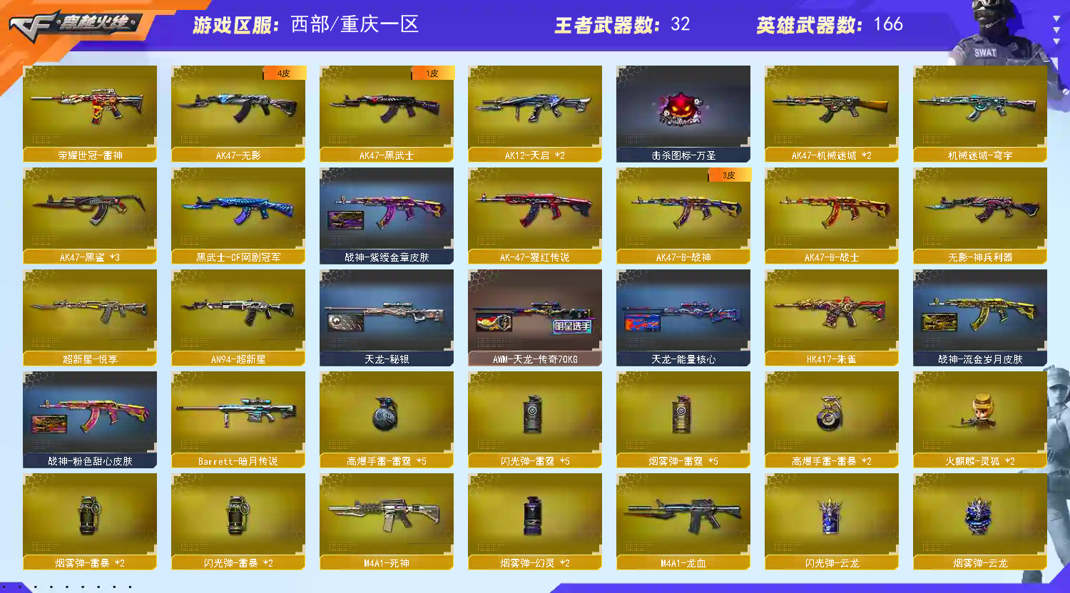 • 游戏区服:穿越火线 / 电信区 / 重庆一区