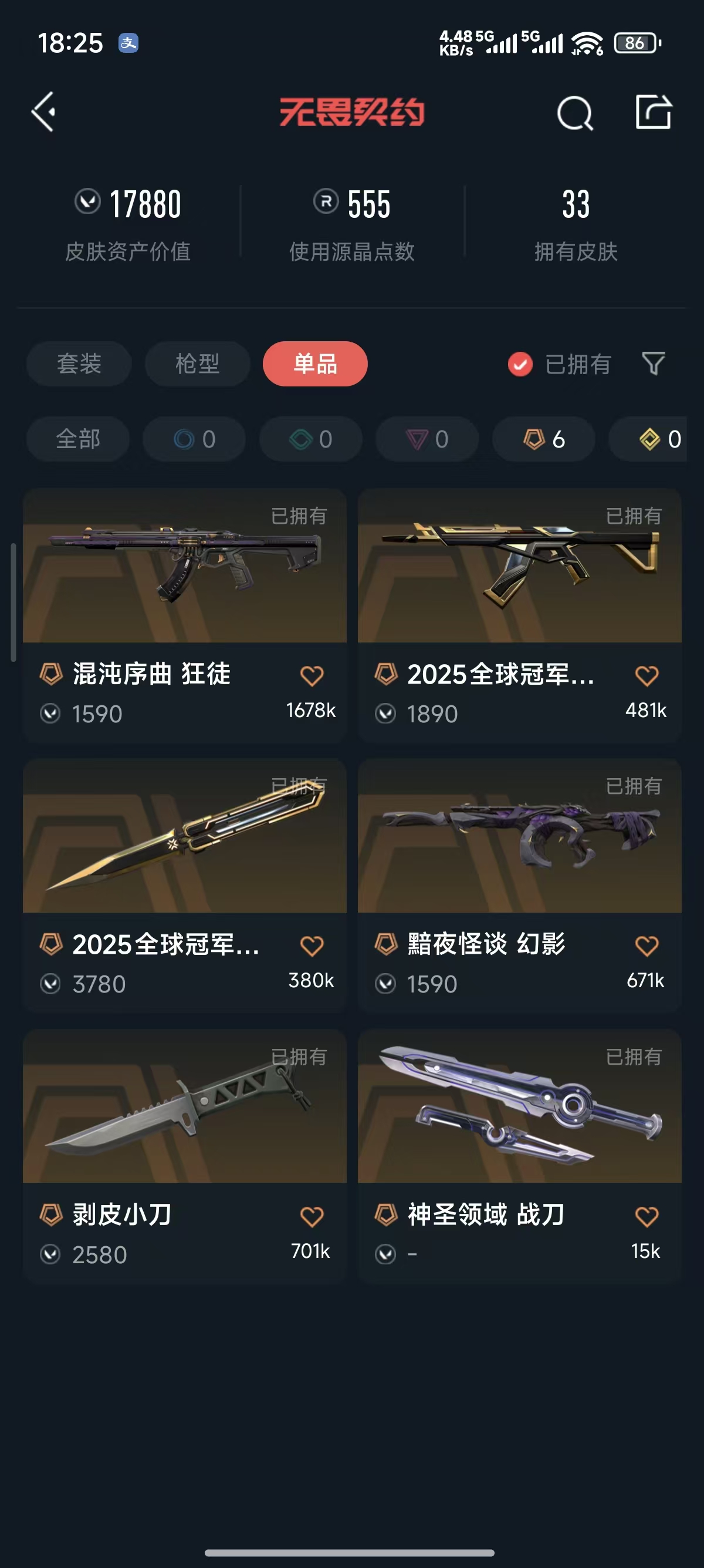 2025冠军套装✨剥皮小刀✨混沌 盖亚 大圣 狂徒✨古神 离子幻影✨离子正义✨