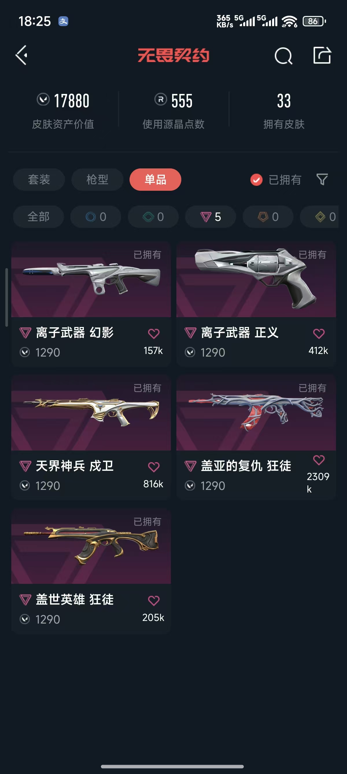 首页 > 租号大厅 > 无畏契约-wegame > wegame/wegame > 2025冠军套装✨剥皮小刀✨混沌 盖亚 大圣 狂徒✨古神 离子幻影✨离子正义✨
