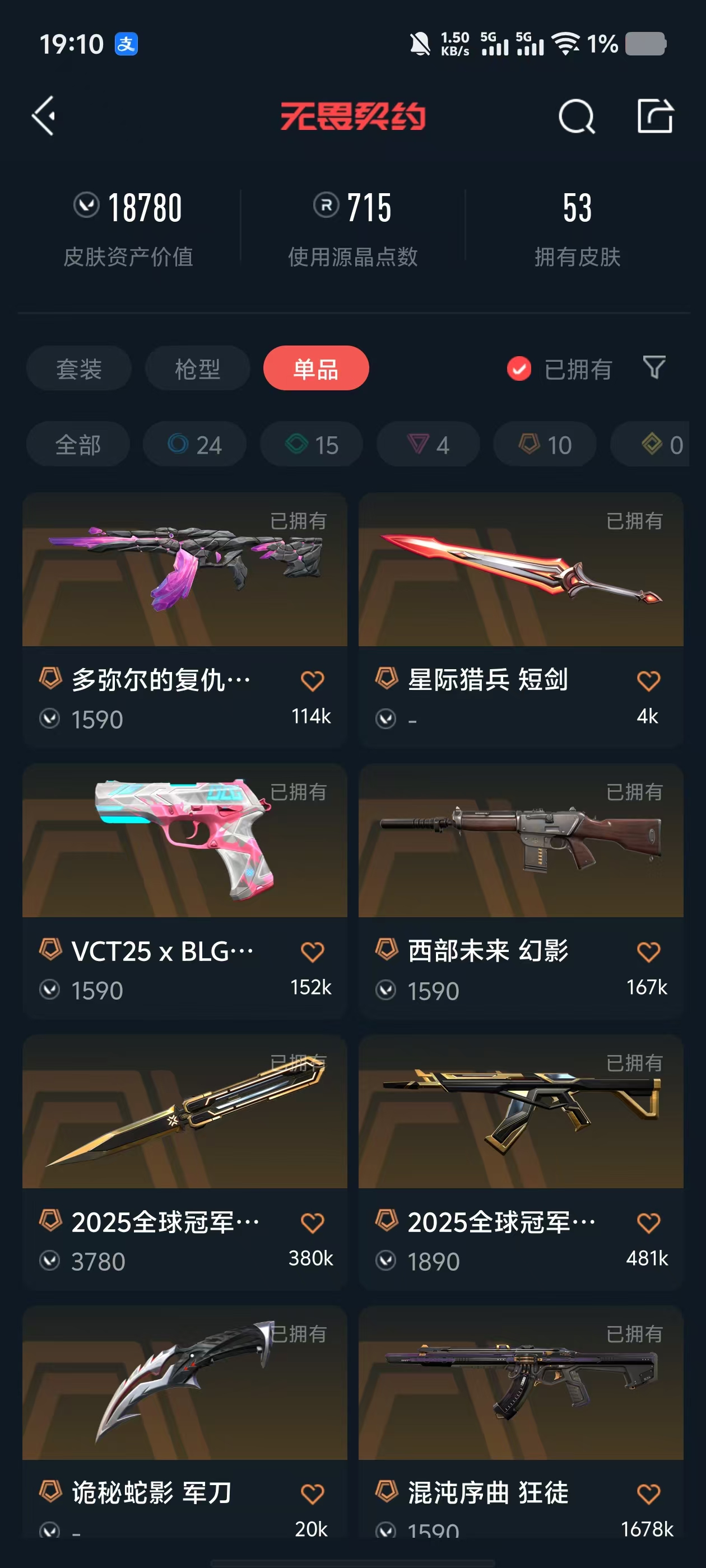 2025冠军套装✨多弥尔的复仇 混沌 盖亚 狂徒✨西部 天界2.0幻影✨离子正义✨VCT标配✨千灵