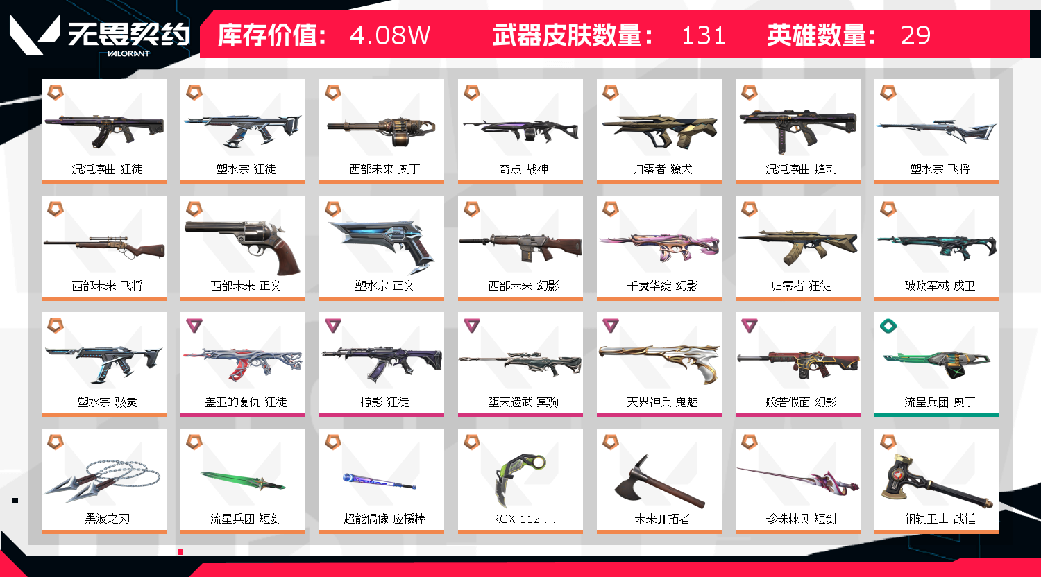 • 武器皮肤数量: 131