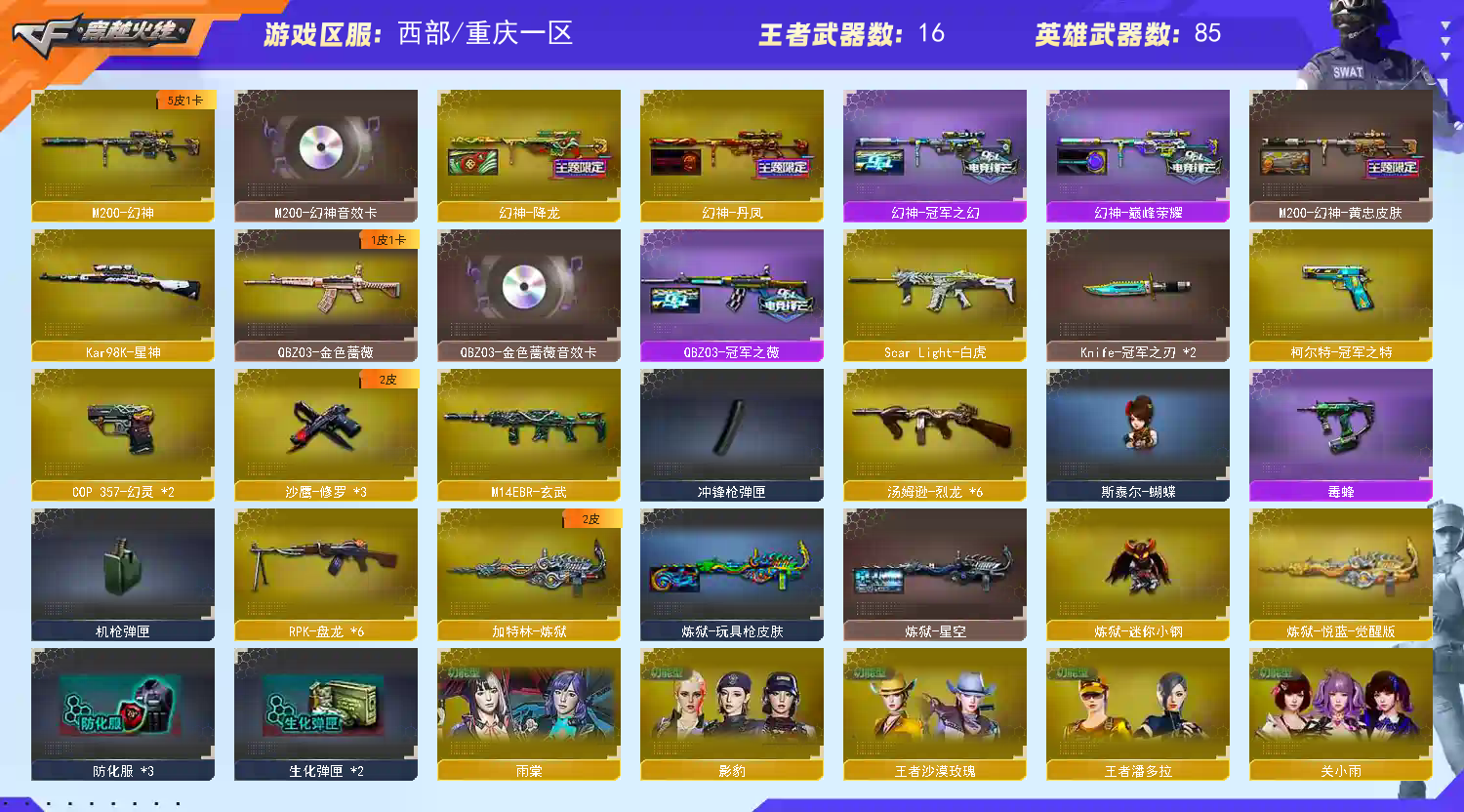 • 游戏区服:穿越火线 / 电信区 / 重庆一区