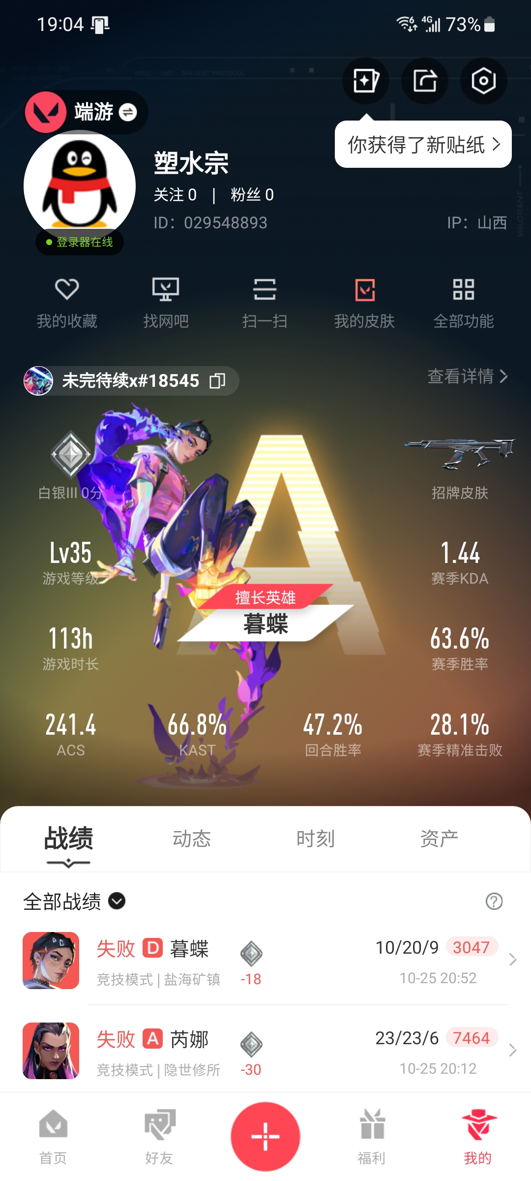 • 游戏区服:无畏契约-wegame / wegame / wegame