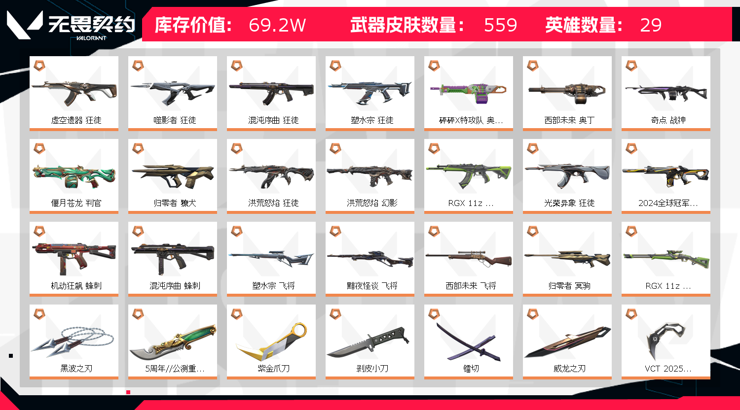 • 皮肤资产价值: 691980