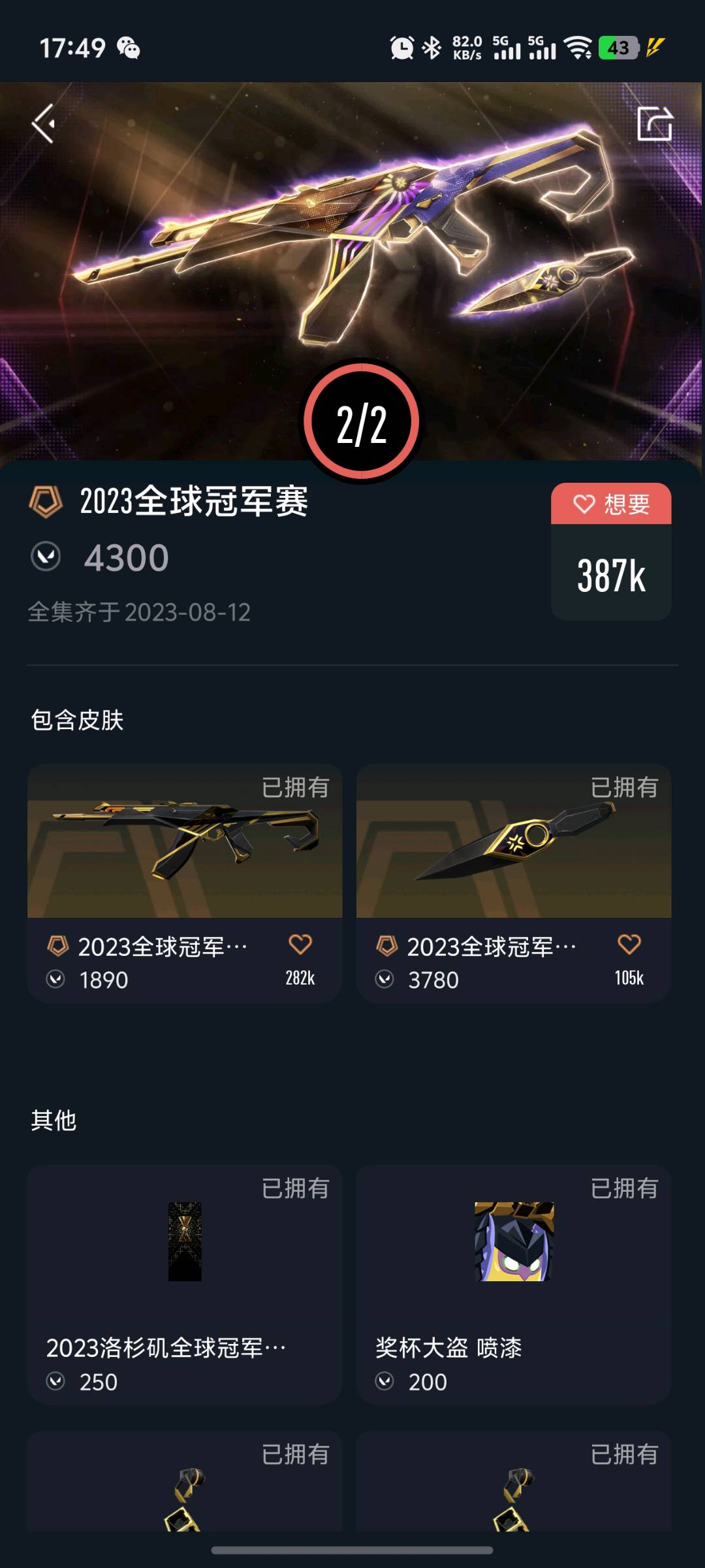 首页 > 租号大厅 > 无畏契约-wegame > wegame/wegame > 200级 离火刃-盖亚12套-奇点套-起源套-23年冠军套-砰砰套-显卡3.0-偃月套等每款均有皮肤