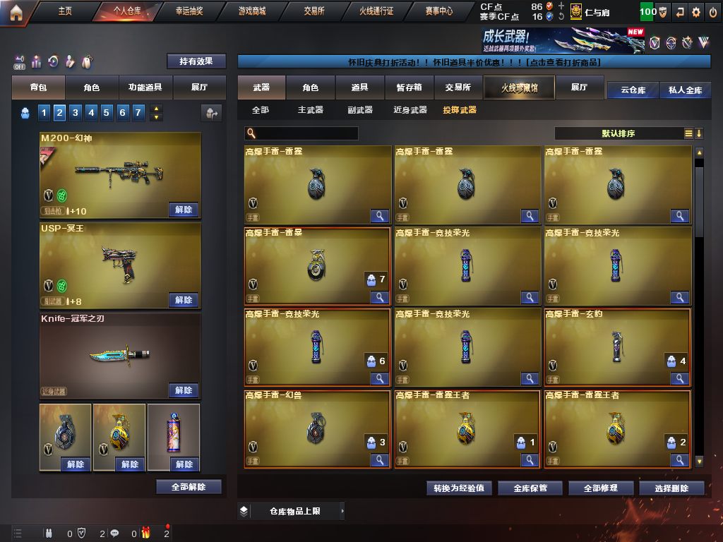 爆破号|幻神3件套+裁决3件套+幻兽+王者凌虎|3冠军之特+2冥王usp+雷暴usp+2雷霆cop