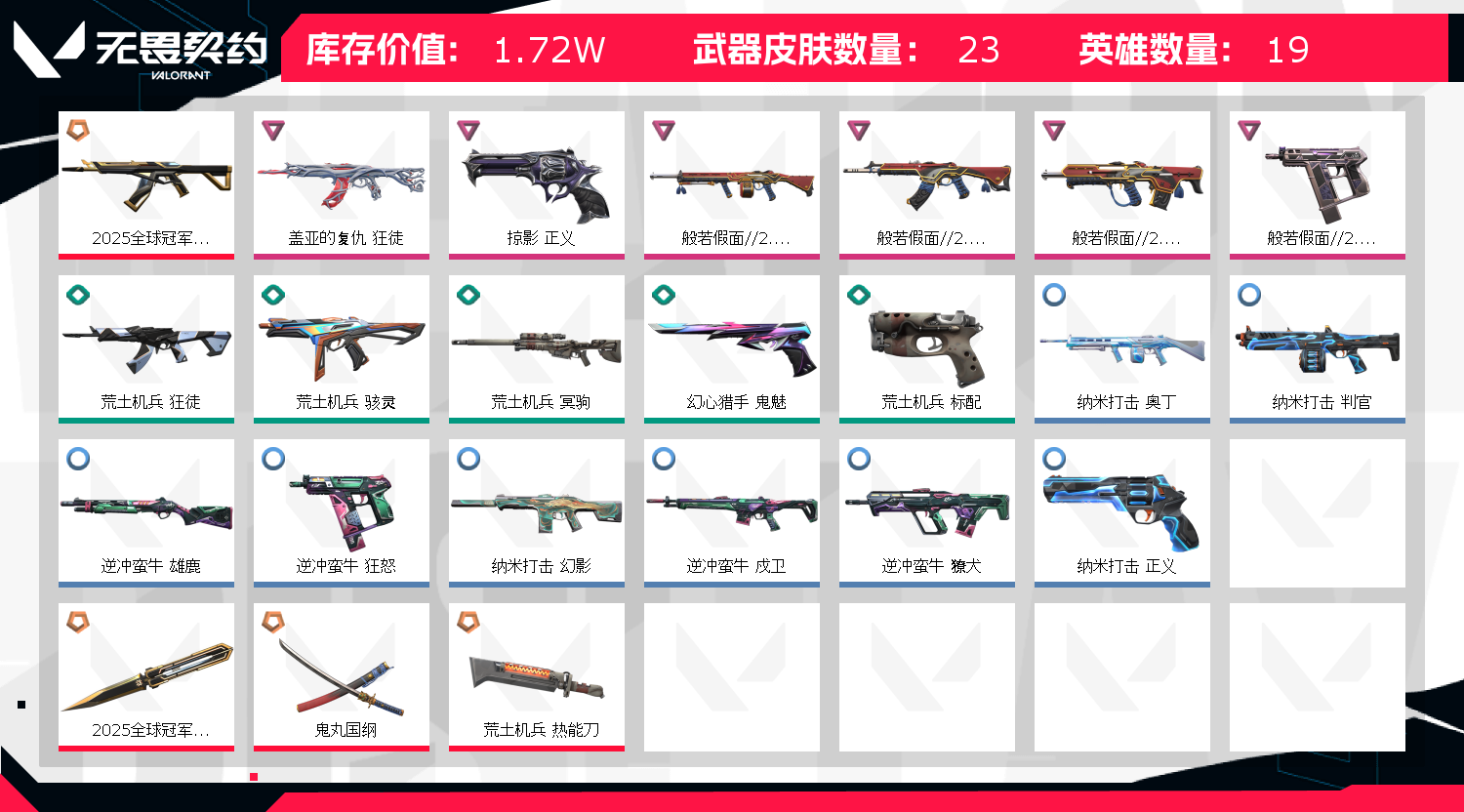 首页 > 租号大厅 > 无畏契约-wegame > wegame/wegame > 【可以排位】⚡️炸鱼秒封⚡️25冠军套⚡️鬼丸国纲⚡️盖亚ak⚡️般若假面2.0套⚡️掠影正义⚡️