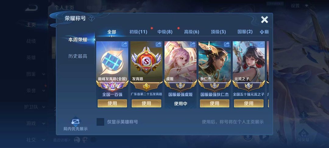 4月正式服双大国虞姬狄仁杰+小国元射在榜⭐️巅峰千强闪电框⭐️106段发育路⭐️可排位禁巅峰