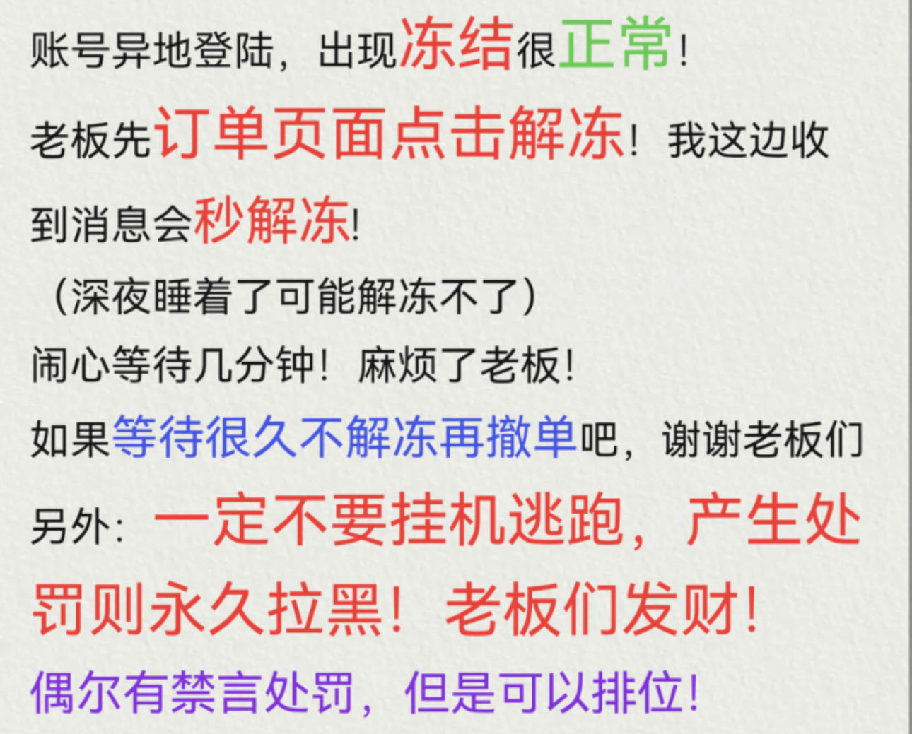 • 租号押金:0.0(订单结束后24小时退还)