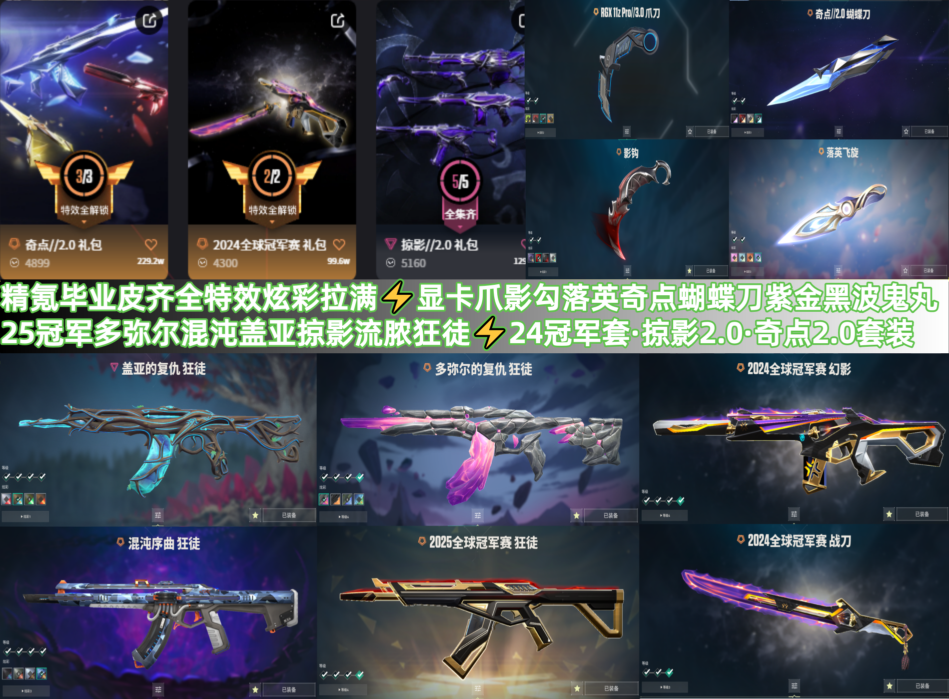 精氪毕业皮齐全特效炫彩拉满⚡显卡爪影勾落英蝴蝶刀黑波⚡25冠军多弥尔混沌盖亚流脓狂徒24冠军侦查幻影