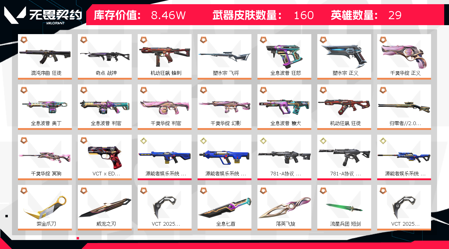 • 皮肤资产价值: 84550