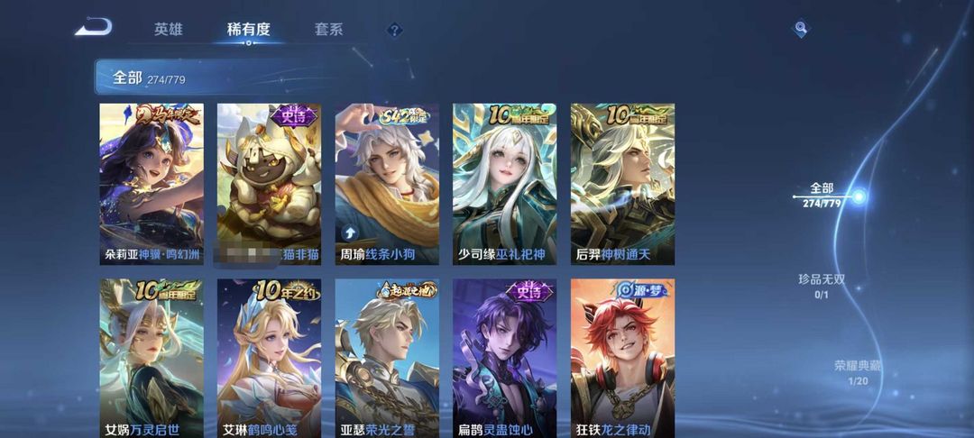 女生号 贵10 多皮肤多传说 别拿那些空号v10来比 要看性价比 貂蝉武则天夏侯惇孙悟空李白鲁班小乔荣耀水晶 妲己九尾无双皮肤 80个传说 473皮肤