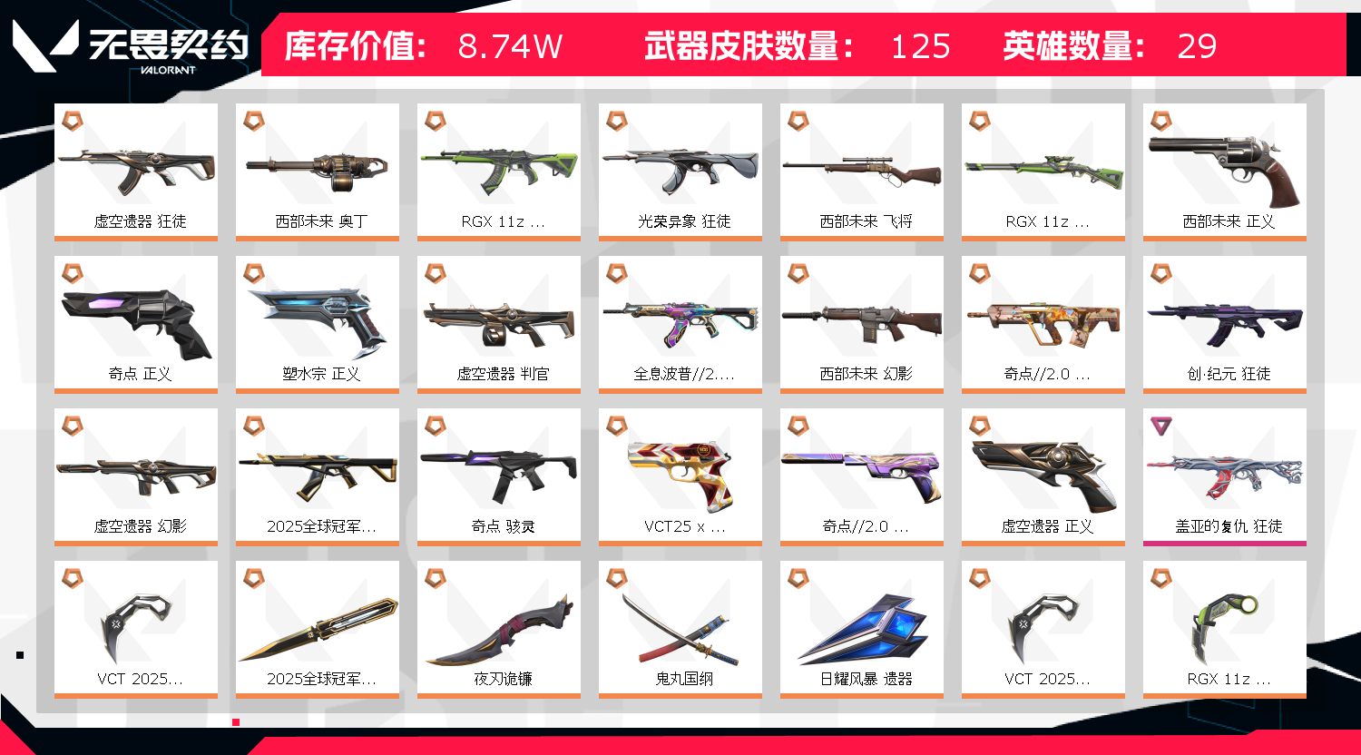 • 皮肤资产价值: 87430