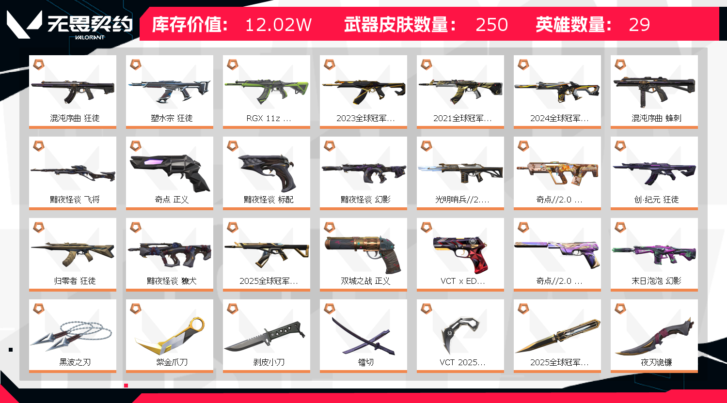 12万库存♥21-23-24-25冠军♥猫猫狂徒♥塑水宗♥奇点2.0套♥暗夜怪谈套♥侦查幻影盖亚狂徒