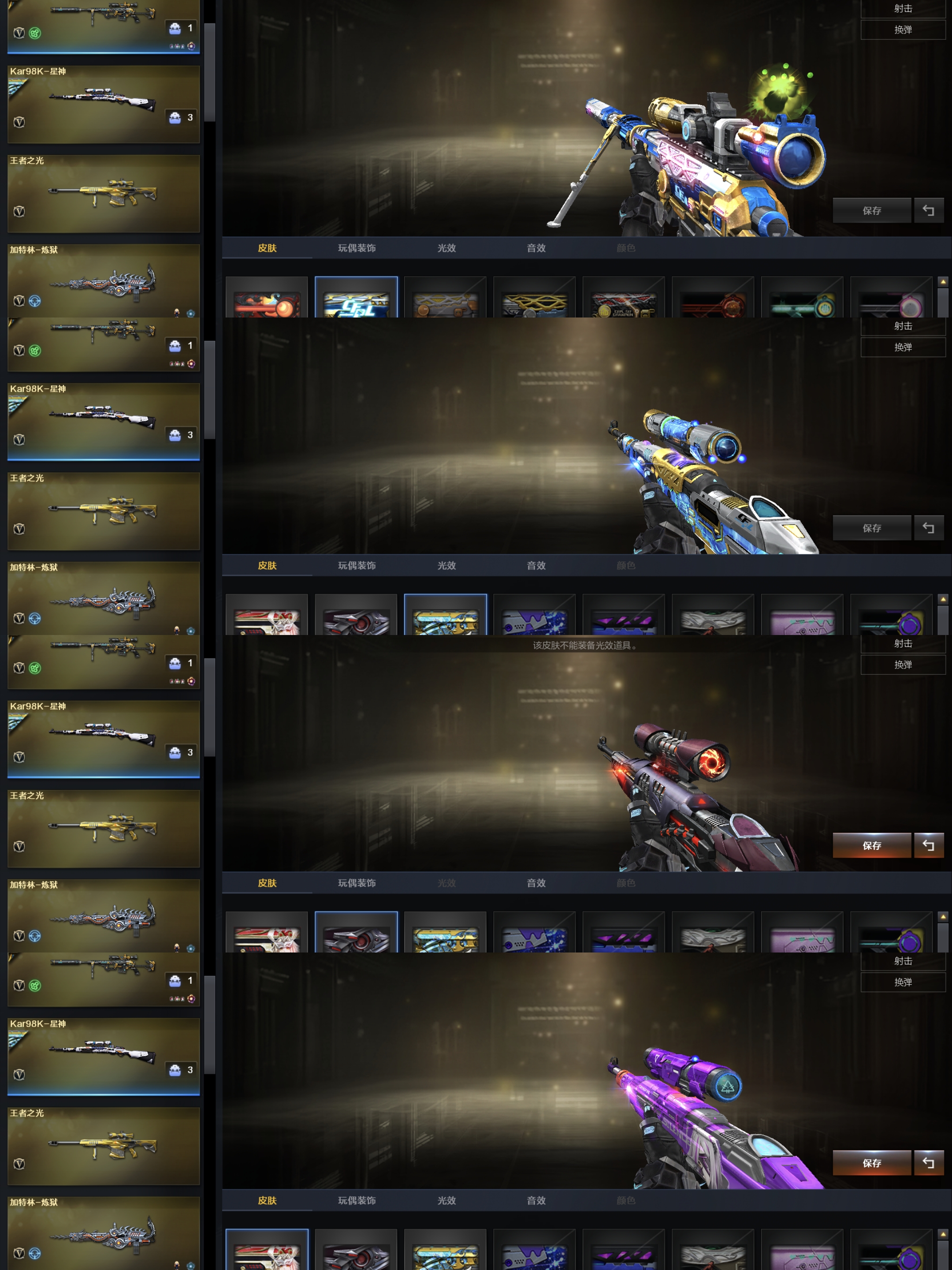 传说圣谕/影刹/星骇/荆棘/冠军幻/星神三皮/冠军之刃×2/六烈清道夫小人枪×2/裁决三件套冥王