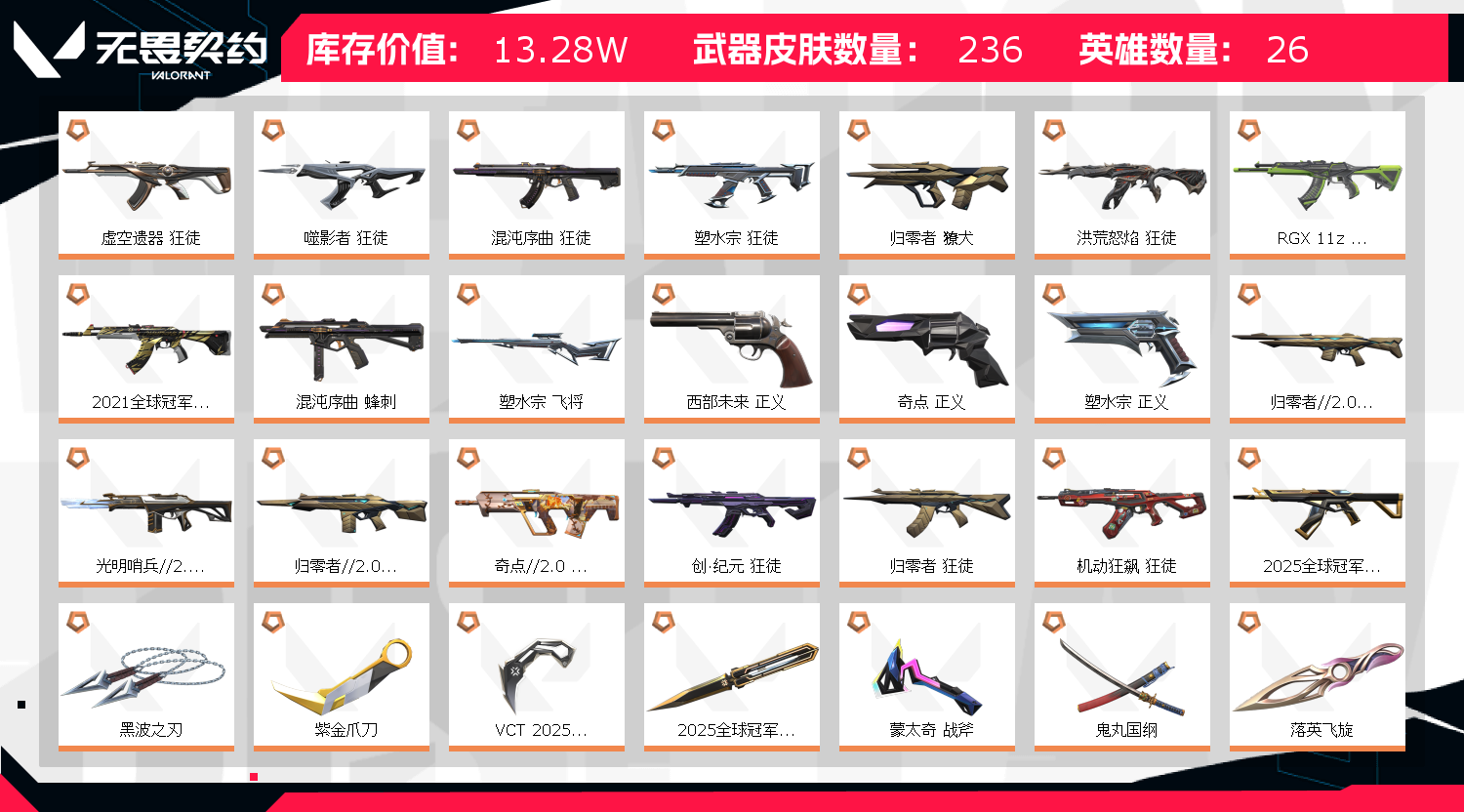 14w库存+2200R点❤21/22/25冠军套25爪❤朋克塑水多套装❤30狂徒❤25刀❤17幻影;黑波之刃,紫金爪刀,VCT 2025 爪刀,天界神兵//2.0 幻影,归零者 獠犬,盖亚的复仇 狂徒,虚空遗器 狂徒,