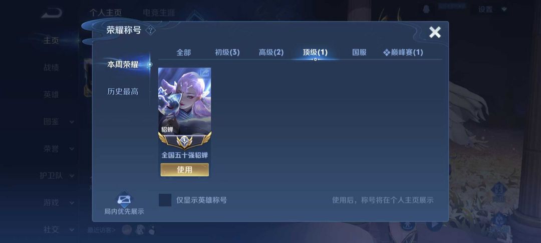 巅峰2200中路总榜千强闪电框⭐国50貂蝉在榜⭐1.9w分貂蝉极品号⭐可排位禁巅峰
