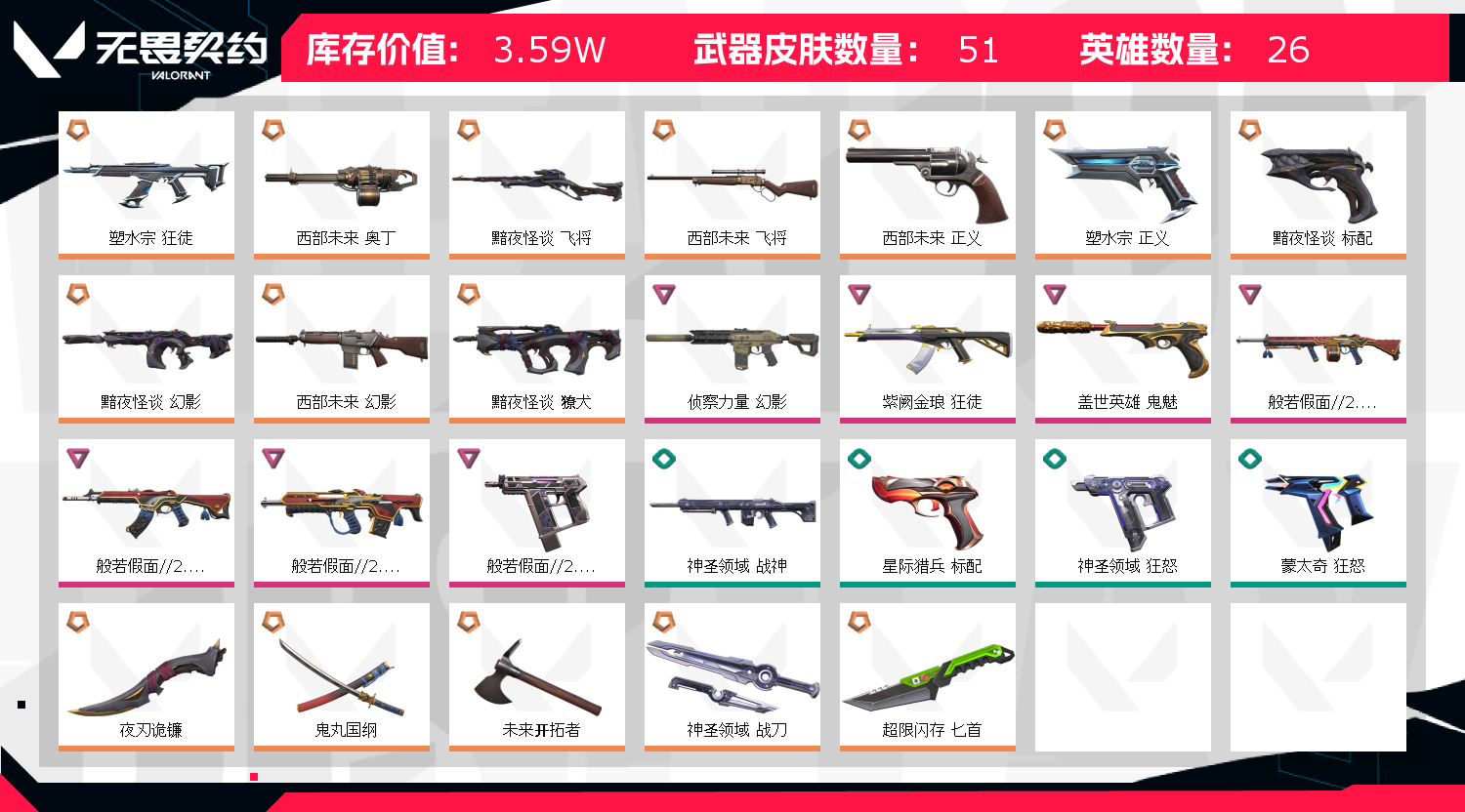 首页 > 租号大厅 > 无畏契约-wegame > wegame/wegame > ❤️3.5w库存❤️西部套❤️太刀❤️塑水狂徒❤️塑水正义❤️紫阙狂徒❤️般若假面2.0❤️