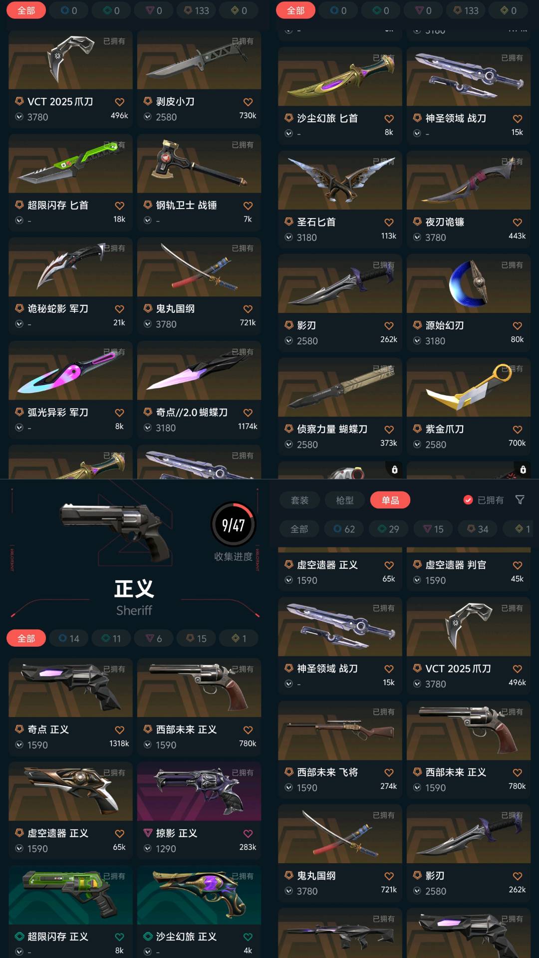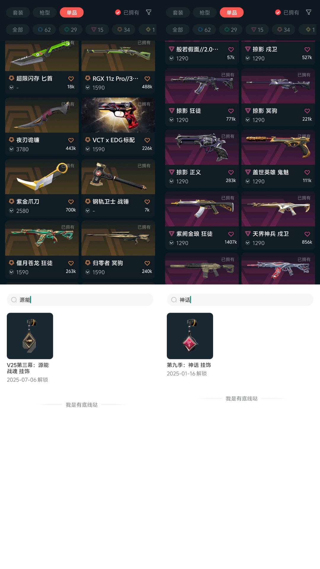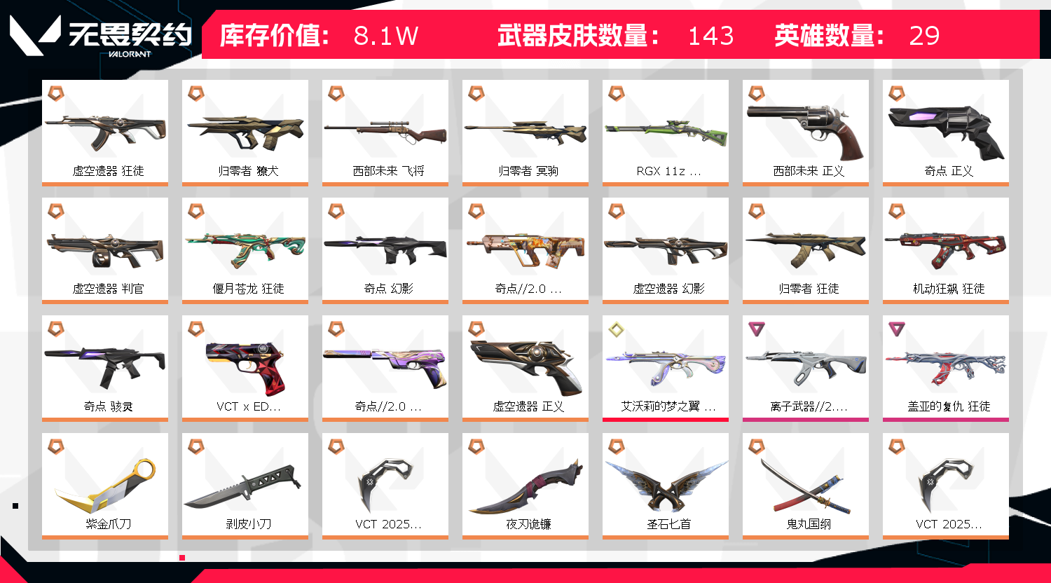 1;紫金爪刀,剥皮小刀,VCT 2025 爪刀,归零者 獠犬,盖亚的复仇 狂徒,虚空遗器 狂徒,掠影 戍卫,