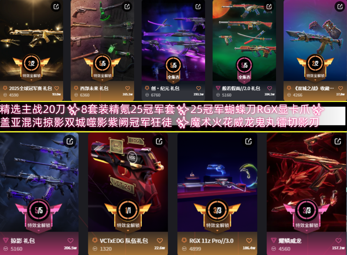 精选20质量刀✨8套装精氪25冠军套✨25冠军蝴蝶刀RGX显卡爪✨盖亚混沌掠影双城噬影紫阙冠军狂徒