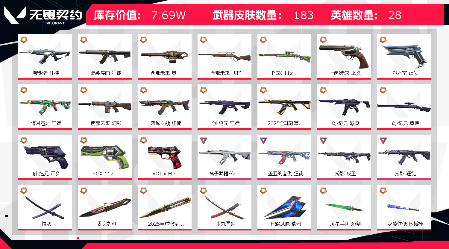 首页 > 租号大厅 > 无畏契约-wegame > wegame/wegame > 精选20质量刀✨8套装精氪25冠军套✨25冠军蝴蝶刀RGX显卡爪✨盖亚混沌掠影双城噬影紫阙冠军狂徒
