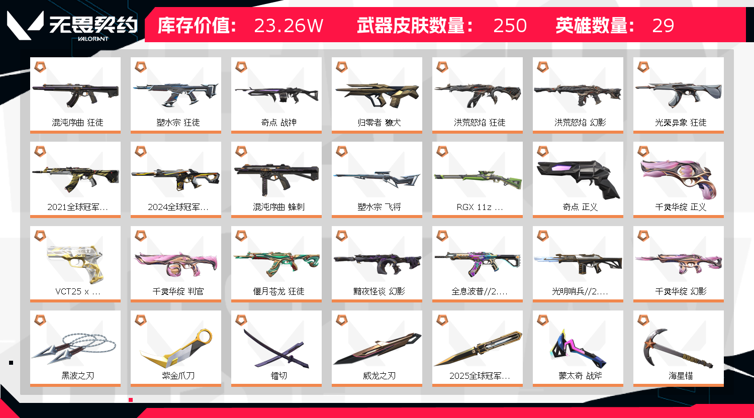 • 皮肤资产价值: 232630