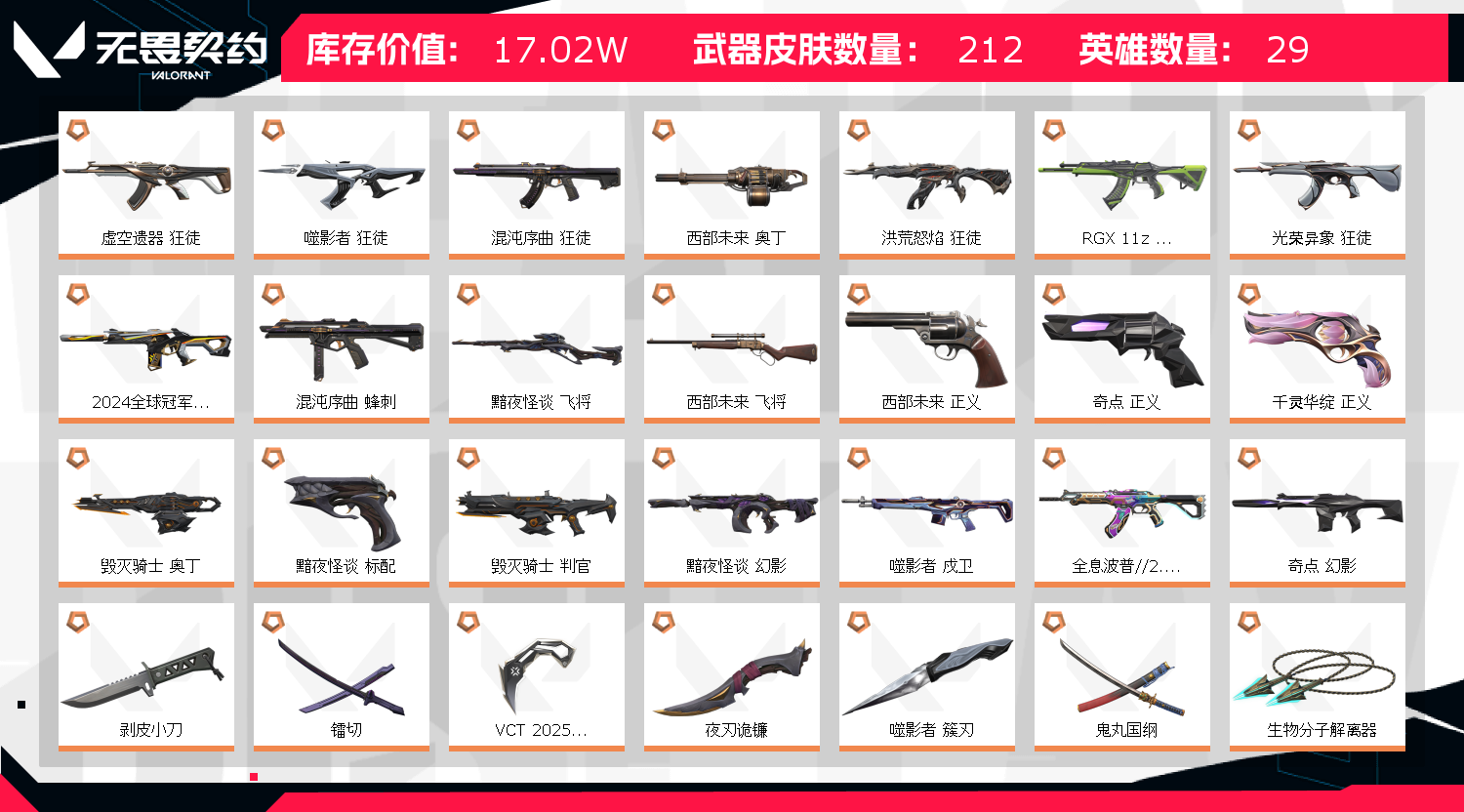 如遇异地冻结,请点击解除冻结后稍等几分钟即可正常登录,感谢等待,禁止开挂,否则必报案追究,禁止挂机,需要调试测试请在训练营,不要实战开了又挂机,感谢配合,喜欢收藏 禁止开挂/挂机/违规行为拉黑;西部未来 奥丁,剥皮小刀,镭切,VCT 2025 爪刀,盖亚的复仇 狂徒,虚空遗器 狂徒,掠影 戍卫,
