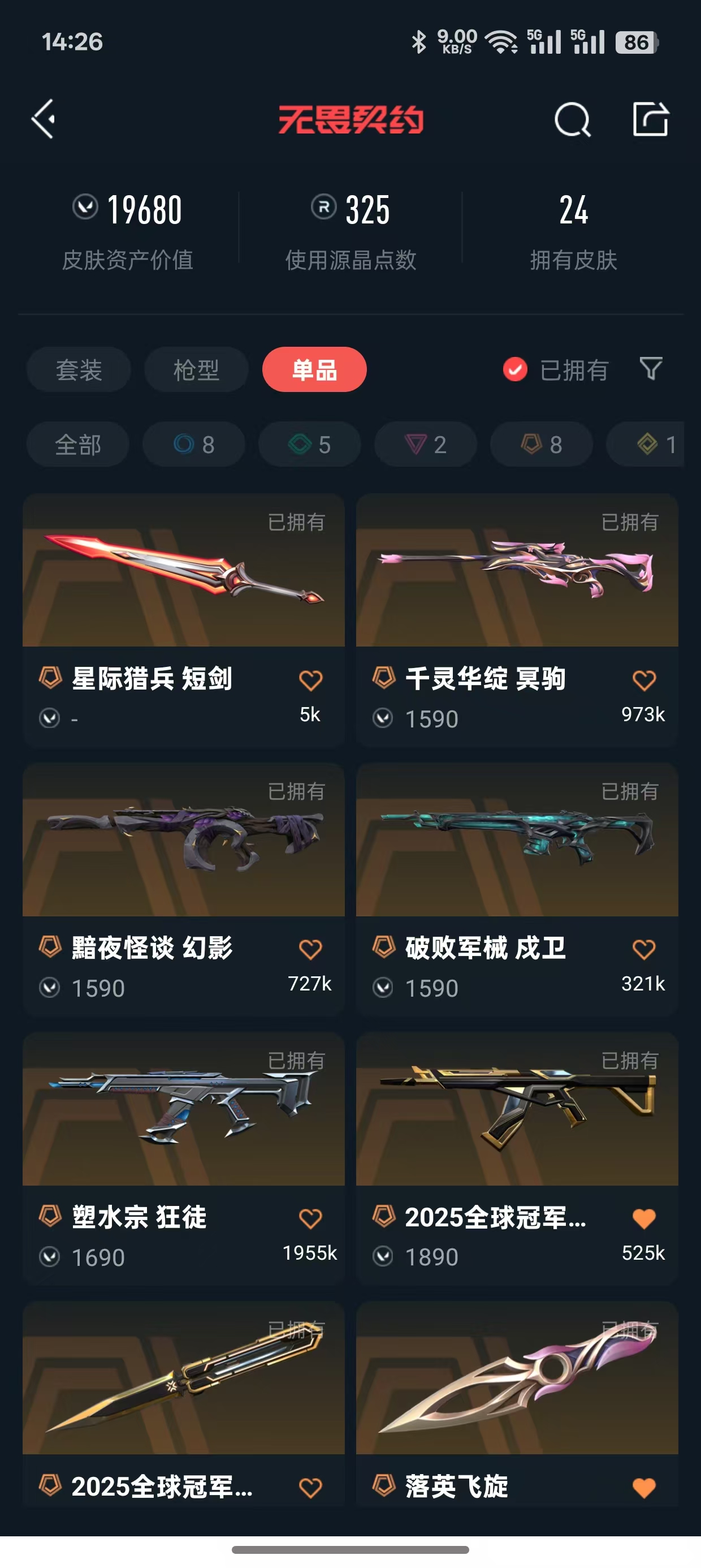 冻结秒解✨25冠军套✨紫阙金琅 狂徒✨塑水宗 狂徒✨黯夜怪谈 幻影✨