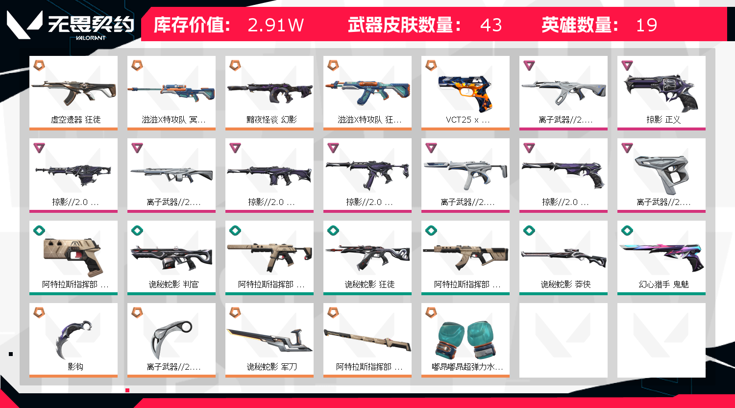 • 皮肤资产价值: 29100