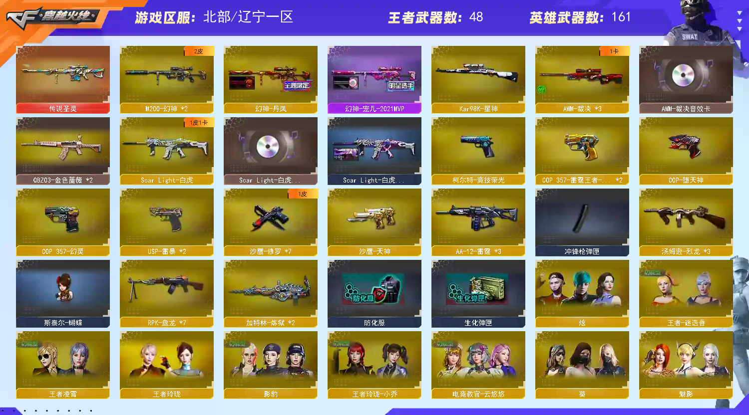187V双幻神宠儿6烈6盘斯太尔蝴蝶朱雀白虎金色蔷薇猎神王者蔷薇裁决音效卡星神竞技荣光usp雷暴圣灵;USP-雷暴,电竞教官-云悠悠,RPK-盘龙,QBZ03-金色蔷薇,M200-幻神,Scar Light-白虎,Kar98K-星神,